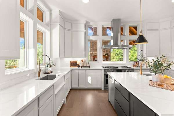 - Beamed Ceilings, Bookcases, Built In Features, Eat In Kitchen, High Ceilings, In Law Floorplan, Kitchen Island, Open Floorplan, Pantry, Vaulted Ceilings, Walk In Closets, Wet Bar