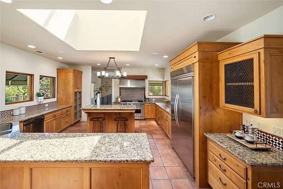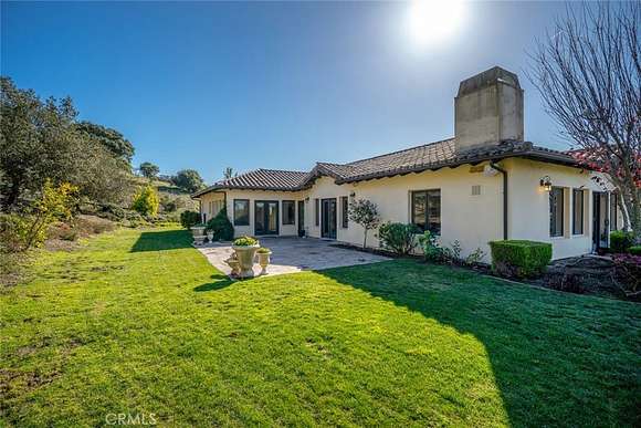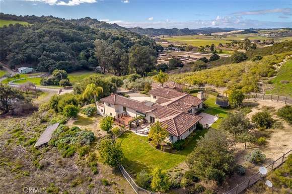 Welcome to your oasis in the heart of Corbett Canyon wine country in Edna Valley. Spanning 7 acres of breathtaking vistas, this estate offers a blend of luxury, privacy, and natural beauty. This gated property, featuring a tree lined entry along a private road. The property features main home with detached guest home, with the main residence showcasing approx. 3,250 sq. ft. of exquisite custom craftsmanship. As you approach the main house, you're immediately struck by the serene surroundings. Step inside to be greeted by a light-filled living area with soaring wood-beam ceilings and panoramic views from every window, creating an ambiance of warmth and openness. The centerpiece fireplace invites you to relax and soak in the tranquility. The dining area, designed for memorable family gatherings, flows seamlessly into a chef's dream kitchen. Skylights illuminate with high-end appliances, a custom refrigerator, and extensive counter and cabinet space, all complemented by an island with a utility sink that opens to an additional dining area. The home features a secluded office at the far end of the house, complete with a balcony. Take a break from work and savor the serene landscape that surrounds you. The master suite is a sanctuary of comfort, featuring windows that frame the surrounding beauty, a walk-in shower, and a separate soaking tub in the luxurious ensuite. Two additional spacious bedrooms on the opposite side of the home offers privacy for family or guests. The 3-car garage downstairs also includes a wine cellar, for the wine connoisseur. The guest house, approximately 1,250 sq. ft., boasts 1 bedroom and 2 bath, with high wood-beam ceilings that create an airy, inviting space. It's an ideal retreat for visitors or an excellent opportunity for rental income. The outdoor spaces are equally captivating, with 70 olive trees enhancing the estate's charm. Flagstone patios, a built-in fire pit, and a BBQ area offer the perfect settings for entertaining or unwinding while taking in the stunning sunsets. Despite the sense of seclusion and complete privacy, you're never far from the best of the Central Coast. Renowned destinations like Pismo Beach, Shell Beach, AG Village, and San Luis Obispo are just a short drive away. This estate is more than a home; it's a lifestyle, blending serene, private living with the convenience of nearby attractions. Experience the epitome of California living in this exceptional Corbett Canyon estate.