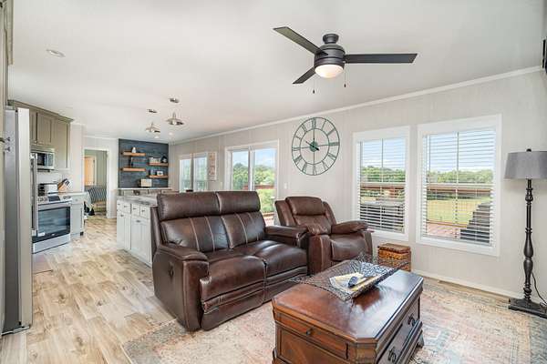 The American Dream, a homesteader's dream come true! Your forever home awaits on this gated 16.39-acre self-sufficient farm with greenbelt status and fully fenced pastures. Ideal for homesteading, plus a stocked pond and flourishing orchard with banana and lemon trees, blueberries, and fresh vegetables. Two solar-powered, temperature-controlled greenhouses (also negotiable) allow for year-round growing. Enjoy hunting and target practice on your own land where deer are commonly sighted. A berm is conveniently located at the back of the property for shooting practice. A massive 50x75 steel beam shop with 220 power and a 2-foot concrete slab offers serious workspace, while the attached 3-car garage adds extra storage and convenience. The elegant full-brick home features soaring ceilings, marble flooring, granite countertops, hardwood floors, and an enclosed sunroom with stunning pond views. Kitchen with SS appliances, LED under-cabinet lighting, and soft close cabinets and drawers. Thoughtful upgrades include a tankless water heater, water softener system, and smart thermostat. The main-level primary suite is complemented by a two-story great room and three bedrooms upstairs. Adding immense value, a brand-new 2024 high-end 3-bed, 2-bath mobile home with its own private walkway, separate address (1636 Eno Rd), and its own septic system is perfect as a guesthouse or Airbnb. It boasts soft-close drawers and cabinets, LVP flooring, stainless steel appliances, and a sliding glass door with breathtaking views of the pond and property. With over $450,000 in upgrades, this exceptional property delivers rural tranquility, self-sufficiency, and refined living--a once-in-a-lifetime farm for the discerning buyer. Only minutes from Downtown Dickson and only an hour to Downtown Nashville and the airport! You are truly set for life