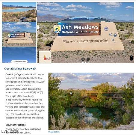Not in a flood zone! A really neat property and area to get away too - farm, ranch or? Big Dune sand dunes recreational area approx 6miles away to the NW - Amargosa Valley is the gateway to Death Valley National Park and Ash Meadows National Wildlife Refuge - a refuge for picnicking, hunting, birding & more -just 15+/-miles away.