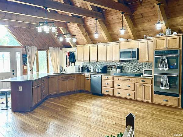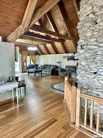How many of us have looked up on the hill to try and get a better view of "The A-Frame"....here's your chance! It's as unique and impressive as you'd imagined. This 2.6 acre property is the perfect setting for this remarkable home. This is just a taste of what 1640 Old Hwy 67 offers: over 2400 finished sq ft up and 2400 finished sq ft down, 3BR (including a loft BR), 2 updated baths, a stunning kitchen, hardwood floors through-out the main floor, a majestic stone silo (Georgia stone) that can be enjoyed from just about any spot in the home, soaring beamed ceilings, natural light from every angle, beautiful views from the deck, spacious walk-out basement family room with FP, heated basement floors, wood stove for auxiliary heat, roof new in 2018, city water (N Morgan co-op), natural gas, a FOUR PLUS car garage (36 x 38), a 39 x 19 shed, Triopia school district, fruit trees, grapes vines, berries, an asparagus patch, wild life, privacy and so much more. It's truly a must see! This home is a family's sanctuary. I was not disappointed with my first viewing and I know you will not be either. Seller asks that all buyers be pre-approved. Selling AS-IS but inspections are welcome.