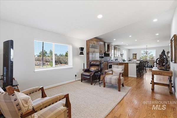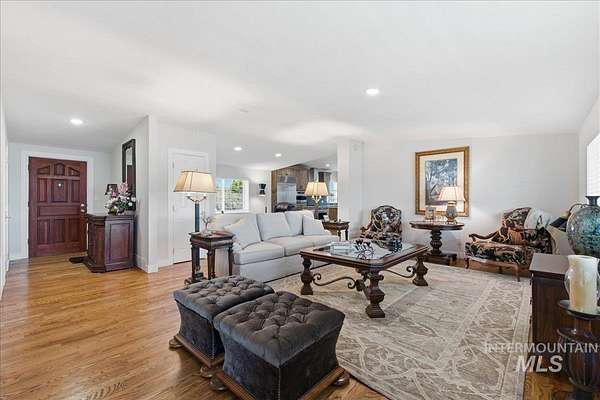 Stunning private acreage retreat on 2.72 acres in the county, featuring 5 bedrooms, 3 bathrooms, and 2 separate living quarters, all renovated with stylish and contemporary finishes. The home welcomes you with sun-filled, open living and family rooms, perfect for entertaining or relaxing. Two kitchens feature high-end appliances and versatile spaces, while the bedrooms include a master suite with a jetted tub, dual vanities, and a walk-in closet, complemented by a split-bedroom layout. Additional rooms include a den and a basement with walkout access, enhanced by a residential elevator. Outside, enjoy an outdoor Jacuzzi, ample parking, a finished attached 2-car garage with extra storage, and a spacious RV shop with two drive-through bays and a full bathroom. Beautifully maintained grounds provide seclusion and space for outdoor living. Located just minutes from the city center, see it in person and imagine the possibilities!