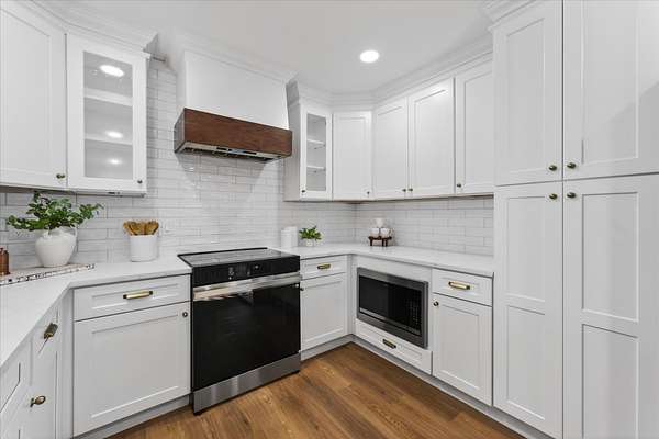 - Dishwasher, Electric Oven, Electric Range, Microwave, Refrigerator, Stainless Steel Appliance(s)