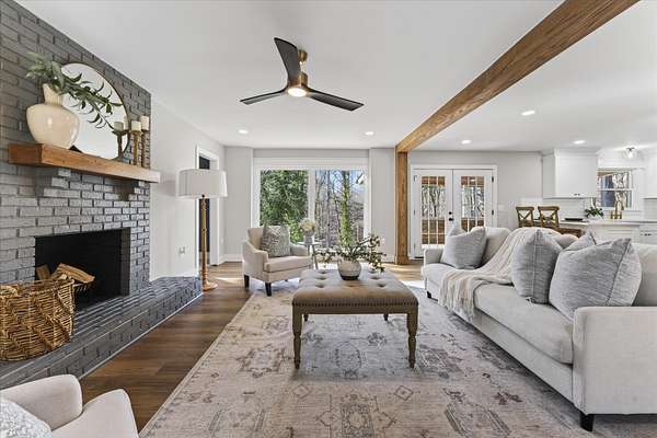 Welcome home to this stunning 5-bedroom, fully renovated retreat perfectly situated on 2.91 private, park-like acres--right in town. Thoughtfully redesigned from top to bottom, this home masterfully blends the serenity of nature with modern luxury living. The inviting exterior sets the tone, while the interior impresses with light-filled living spaces, refined finishes, and an effortless flow ideal for both everyday living and entertaining. With five spacious bedrooms and a full finished basement, there's flexibility for guests, home offices, or multigenerational living. Outside, the expansive grounds feel like your own private park--perfect for relaxing, entertaining, or simply enjoying the quiet beauty of nature. A rare opportunity to enjoy luxury, space, and privacy without sacrificing location.
