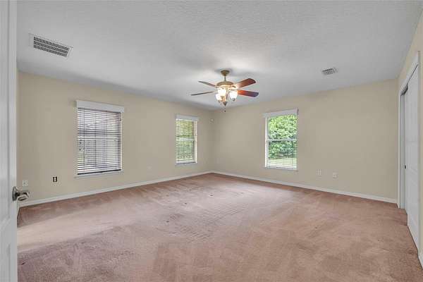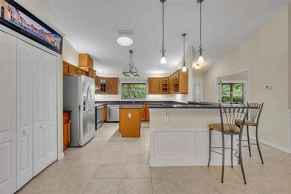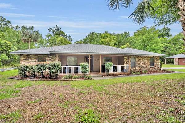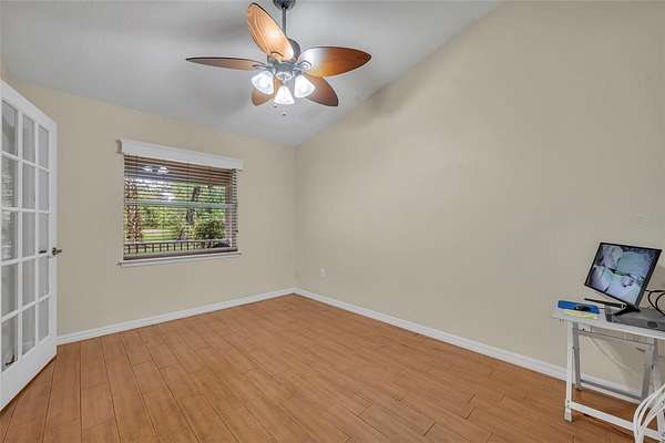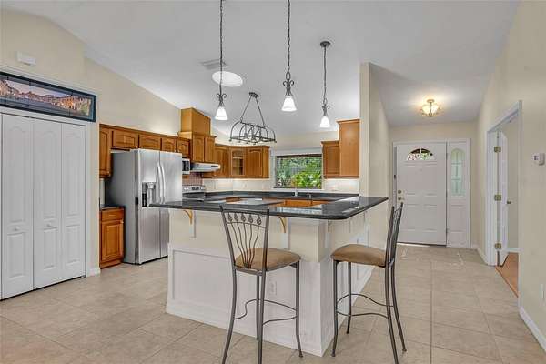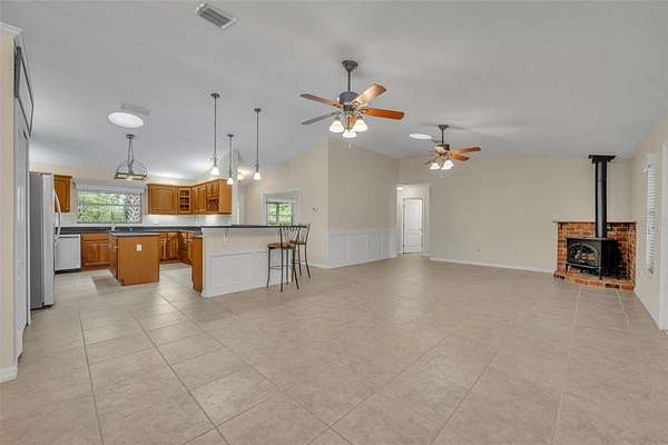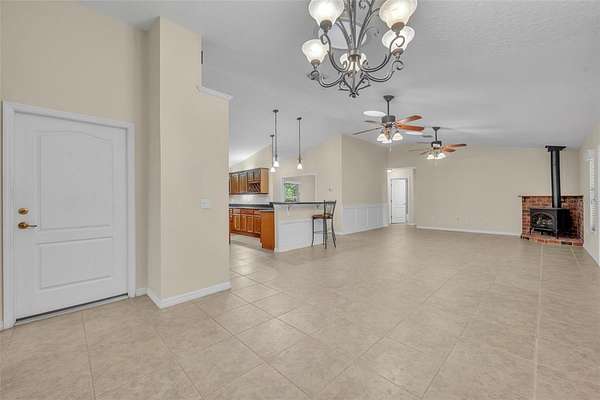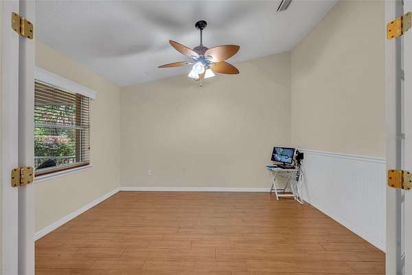 Welcome home to the Florida lifestyle you’ve been dreaming about. From the moment you arrive, the large, inviting front porch sets the tone—perfect for morning coffee, evening unwinding, or simply enjoying the neighborhood charm. Step inside to an open floor plan, highlighted by the vaulted ceilings, creating a spacious yet comfortable feel throughout. A front office offers the ideal work-from-home setup, while the thoughtfully designed split-bedroom layout provides privacy for everyone.