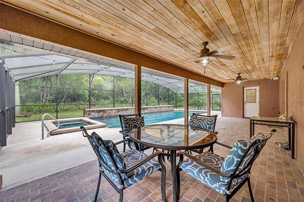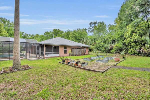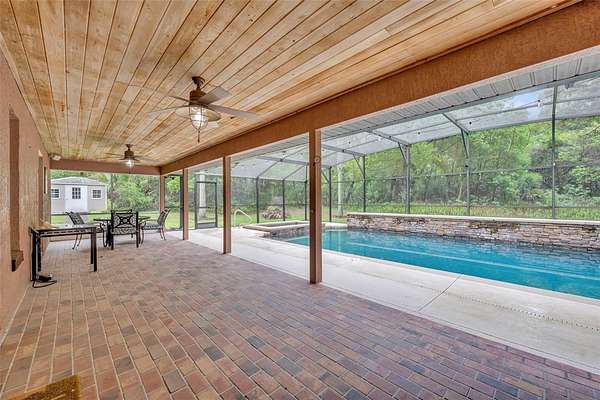 Step outside and you’ll truly see what Florida living is all about. The oversized covered patio opens directly to a fully screened-in pool and hot tub, creating a private retreat that’s ideal for entertaining or simply soaking up the sunshine. With a heated saltwater pool and spa, this outdoor space is ready to enjoy year-round. The outdoor space also features mature palm trees and a 31' x 16' raised garden bed, with an adjacent 10' x 12' garden shed.