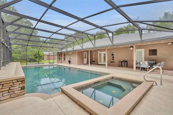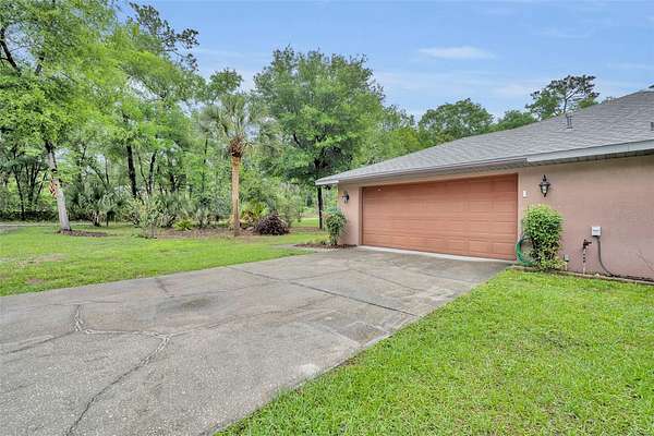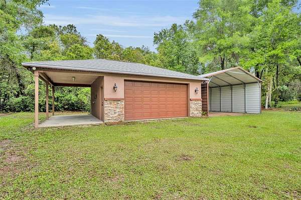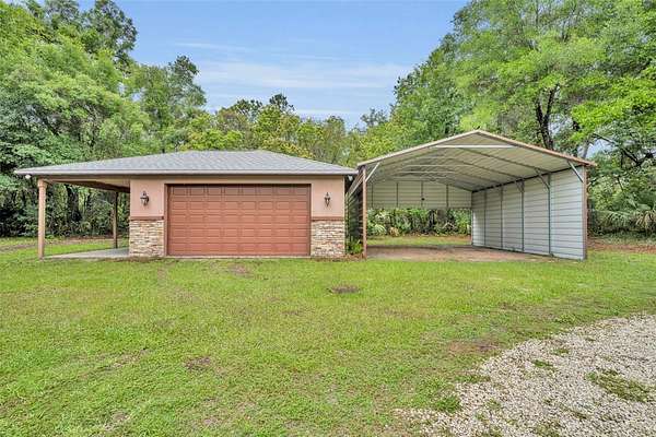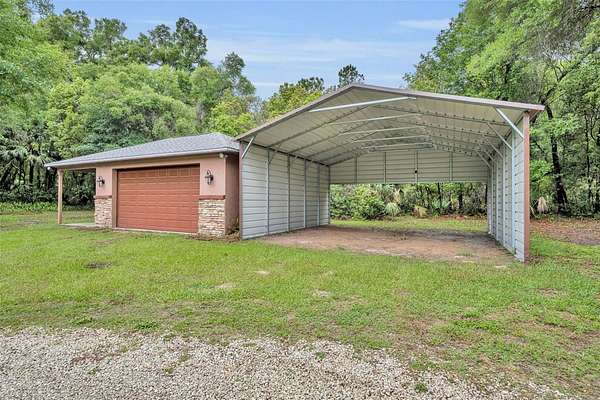 Additional updates and features include PVC piping, a new roof (2022), and new water heater (2020). The home also offers gas features including a fireplace and hot tub, supported by a 500-gallon gas tank. A detached garage with electrical adds extra flexibility for storage, hobbies, or workspace. There is also a 24' wide x 25' deep RV shelter with a 30 amp outlet. This home blends comfort, functionality, and that unmistakable Florida lifestyle—don’t miss your chance to make it yours.