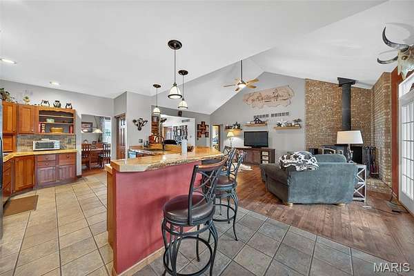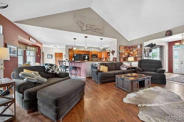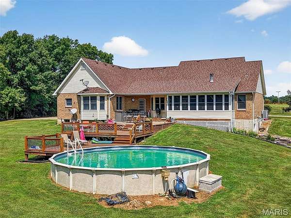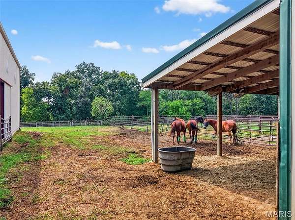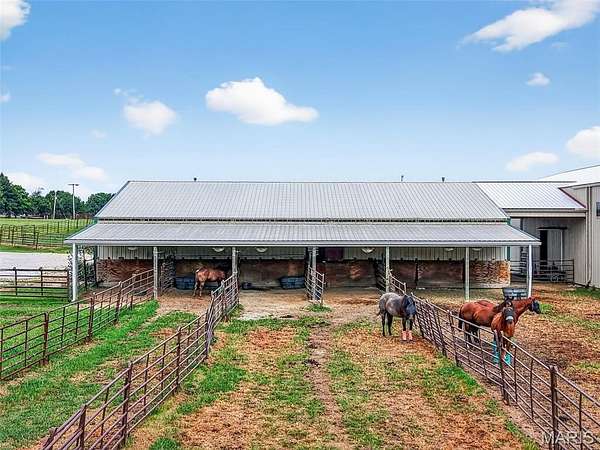 Motivated Seller! Equestrians Dream Estate on 24+ sprawling acres! Welcome to your private country retreat. Step inside this beautifully maintained ranch home to a spacious, open floor plan featuring 4beds/4 full baths, vaulted ceilings, expansive living area, a large kitchen island, formal dining room & main floor laundry. With two primary suites and A partially finished walk-out basement offering additional living space with kitchenette, bonus room, & rec room, this home offers the best options for multi generational living! The 3 season porch is perfect for morning coffee or just relaxing, while the large patio, deck & above ground pool will be the highlight of family celebrations. With over 5600sqft of finished living space, the possibilities are endless! Horse lovers will fall in love with the thoughtfully designed, heated barn, complete with 8 spacious 12x16 stalls, a large tack room, wash stall and full bathroom. Ride year round in the impressive 80x200 indoor riding arena, take advantage of the 150x250 Lighted outdoor arena with 16 50K lumen lights, or let your horses enjoy the expansive, fully fenced turnout pastures. The back pasture has a small pond, and gently rolling landscape. Just minutes from Hwy 70, multiple stores, Wentzville & Foristell shopping, and only 45min to Lambert airport!