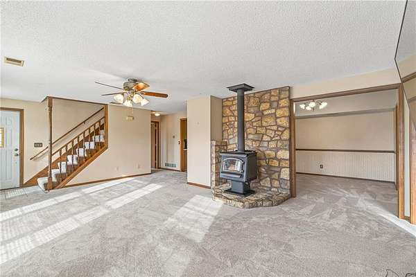 This is your new home if you have been looking to move to the country. This home is located outside the city limits of Bonner Springs. Spacious 4-bedroom, 2-bathroom with over 2400 sq ft of living space, nestled on 3.71 acres. It's only a short drive to Bonner Springs and the KC shopping outlet. The home has brand new carpet throughout. With a little TLC and paint, this house can become your dream home. The property features a 16ft x 32ft lean-to metal building, a chicken coop, and a storage shed. Come take a look at this home as soon as possible and start enjoying your peaceful and quiet country lifestyle. Call to book your showing today.