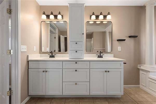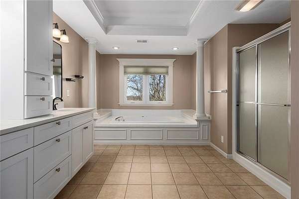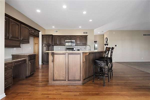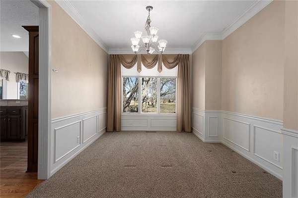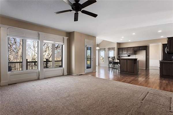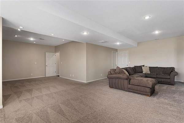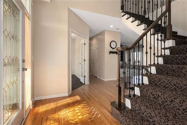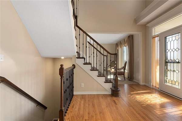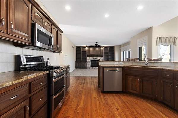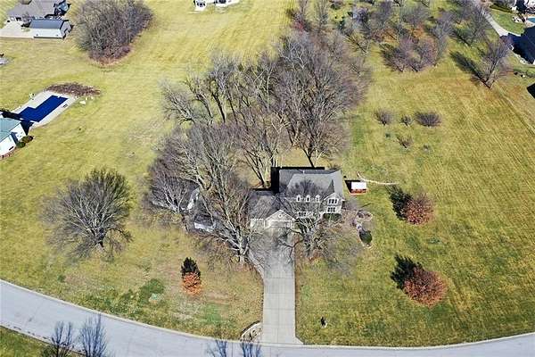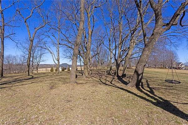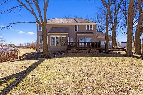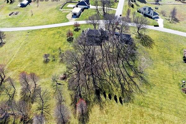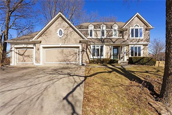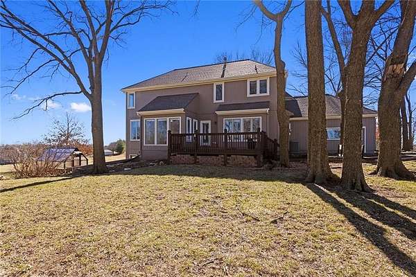 Discover the perfect blend of elegance and acreage in this stunning 2-story estate nestled on 2.67 acres in the sought-after Holmes Creek neighborhood and Kearney School District. The grand entryway welcomes you with a formal office and a sophisticated sitting room that flows into the formal dining area, leading to an expansive kitchen boasting a large island, tile backsplash, pantry, and walk-out deck access. The open-concept main floor continues into a cozy living room anchored by a stone fireplace and custom built-ins, with a convenient laundry room and half bath just off the oversized 3-car garage. Upstairs, the luxurious primary suite features a whirlpool tub and walk-in closet, complemented by three additional bedrooms-all with walk-in closets and private or Jack-and-Jill bathroom access. The finished walk-out basement provides even more living space with a second fireplace, a full bath, and massive storage. Outdoor enthusiasts will love the 30x25 outbuilding, charming greenhouse, and the peace of mind offered by a pre-installed radon mitigation system.