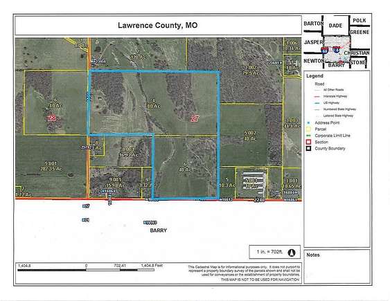 120-Acre Cattle Farm in Scenic Lawrence County, Missouri. Step into the rural lifestyle you've been dreaming of with this 120-acre cattle farm in Lawrence County. Designed with simplicity and efficiency in mind, this property is perfect for a rancher seeking a turnkey operation with everything needed to manage livestock.Property HighlightsExpansive Grazing Land: The rolling pastures are well-maintained and provide plenty of room for cattle to graze and thrive. With 120 acres at your disposal, you'll have all the space you need to grow your herd.Reliable Water Supply: The property includes a well-kept pond and an automatic freeze-proof waterer, ensuring your cattle have access to clean water year-round with minimal maintenance.Fencing & Grazing: Sturdy perimeter and cross-fencing allow for rotational grazing or dividing pastures, optimizing land use and herd management.Corral with Head Chute: The included corral system, complete with a head chute, makes handling livestock straightforward and stress-free, saving you time and energy.Home Site Potential: With sweeping views of the picturesque Missouri countryside, you'll have several ideal spots to build your custom dream home or a ranch house.Prime Location Located on the edge of Lawrence County; this farm offers the best of rural living while keeping you connected. Nearby Verona, Monett, Mt. Vernon and Aurora provide access to schools, shopping, and agricultural resources, while major highways are just minutes away for easy travel. Your Rural Dream Awaits. With its practical design and beautiful setting, this 120-acre cattle farm is ready for your vision. Whether you're expanding your current operation or looking for a peaceful escape, this property offers a unique opportunity to embrace the farming lifestyle. Don't Miss Out! Properties like this with accesses off two farm roads don't stay on the market for long.