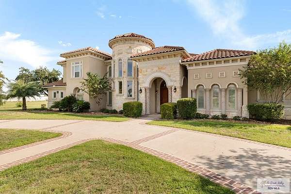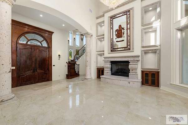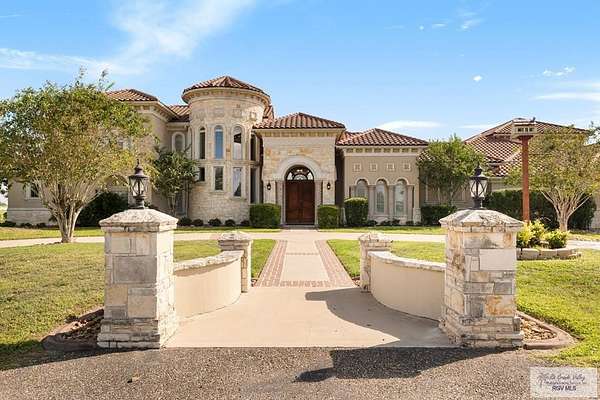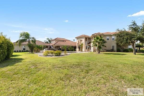 Immaculate 18-Acre Custom ESTATE, where luxury, entertainment, & comfort come together like nowhere else! This 6,017 sf home features 5 beds & 4.5 baths with marble floors, elegant finishes, gas fireplace & high decorative ceilings. The gourmet kitchen showcases stainless gas appliances, granite countertops, & designer cabinetry, making it a chef's dream. The downstairs master suite features a sitting area, jetted tub, shower, & outdoor access. Additional bedrooms are spacious with designer finishes. Stay active in the indoor racquetball court or unwind in the sauna, & enjoy movie nights in the custom theater. The executive office features built-in shelving & private balcony. Step outside to a resort-style saltwater pool, waterslide, & hot tub. Additionally, a separate 2,000sf (approx) guest house with 2 beds, 2 baths, a full kitchen, & living room. The property also includes 2 large barns/warehouses. Has NEVER FlOODED.