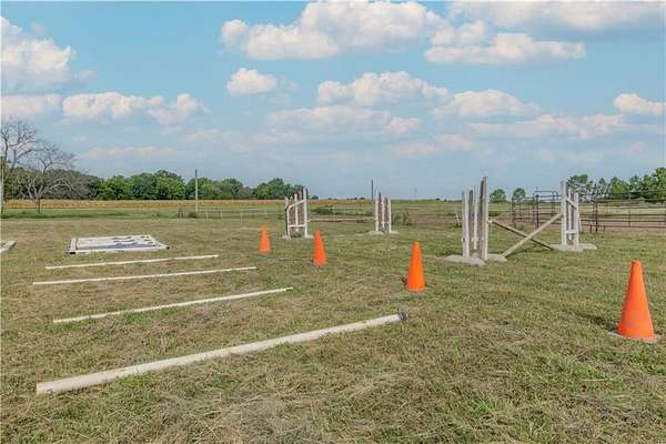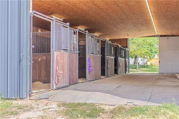 Motivated Sellers!! Welcome to this well-maintained 3-bedroom, 2-bath raised ranch on 30 beautiful acres! This property features a private 1-acre stocked pond and a fully equipped farm setup, including a 42' x 60' Morton building with 5 horse stalls, a 12' x 12' tack room, a 12' x 24' shop with A/C, and a 12' x 24' studio plumbed for a bathroom. There's also a 30' x 50' outbuilding with a lean-to and a round pen. The home offers a new deck, a 3-year-old roof, stainless steel appliances, and a freshly inspected water softener. A natural gas well on the property provides a valuable resource for energy efficiency and cost savings -- a rare and unique feature! The grounds are adorned with mature fruit trees--apple, pear, peach, and apricot--as well as pecan and walnut trees. This is a truly special, fully functional farm ready for your vision!