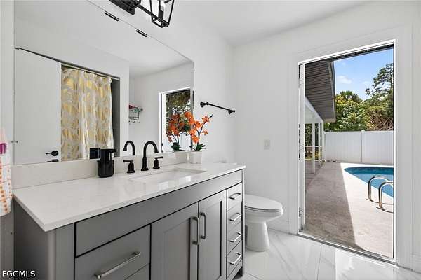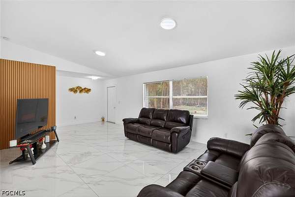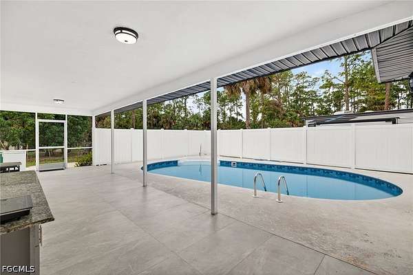 Beautifully updated 3-bedroom, 2-bath home situated on an oversized lot in the desirable Golden Gate Estates area of Naples! This move-in-ready property offers the perfect blend of modern finishes and private outdoor living. Step inside to a bright, open layout featuring large-format tile flooring throughout, fresh interior finishes, and a spacious living area ideal for entertaining. The fully renovated kitchen boasts sleek white cabinetry, quartz countertops, stainless steel appliances, and a modern backsplash. Enjoy Florida living at its finest with a screened-in lanai and a sparkling private pool, perfect for relaxing or hosting guests. The expansive lot provides plenty of space for boats, RVs, additional structures, or future expansion-no HOA restrictions! The property also features a long driveway, ample parking, and a peaceful, wooded setting offering privacy while still being conveniently located near shopping, dining, and top-rated schools.