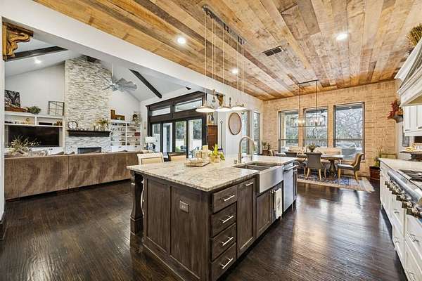 - Built-In Features, Built-In Wine Cooler, Cable TV Available, Chandelier, Decorative Lighting, Double Vanity, Eat-In Kitchen, Flat Screen Wiring, Granite Counters, High Speed Internet Available, Kitchen Island, Open Floorplan, Paneling, Pantry, Sound System Wiring, Vaulted Ceiling(s), Walk-In Closet(s), Wet Bar