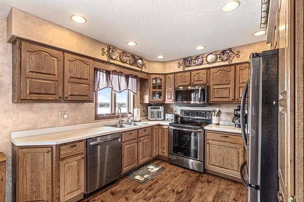 Beautiful country walkout home on nearly 13 acres, offering the perfect blend of peaceful rural living and modern convenience. Enjoy scenic views and plenty of space for outdoor activities, recreation, or hobby farming, all while being just minutes from schools, shopping, restaurants, and easy access to Highway 29. The lower level includes a small kitchen and a movable bar, making it ideal for entertaining family and friends. The property also features a detached 3-car garage, providing room for vehicles, tools, and storage. This is a rare opportunity to enjoy privacy and wide-open space without sacrificing nearby amenities. Metal roof in 2014, Larson's solid oak cabinets and black stainless steel appliances. Home is pre-inspected. LL could have 4th bedroom or another family room.