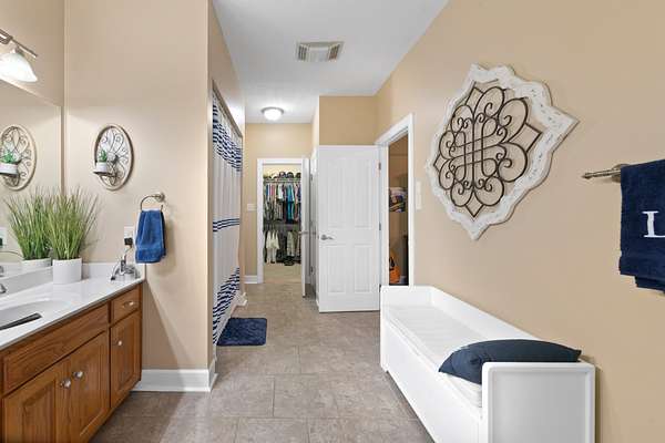 Inside, the home is filled with thoughtful details and quality finishes. Hardwood floors run throughout, adding warmth and character. The kitchen is well appointed with a charming breakfast nook, custom cabinetry, tile backsplash, and ceramic tile flooring. 2 of the 3 bedrooms feature tray ceilings, giving each space an added touch of charm. The primary suite includes a spacious bathroom with double sinks for convenience and a walk in closet.