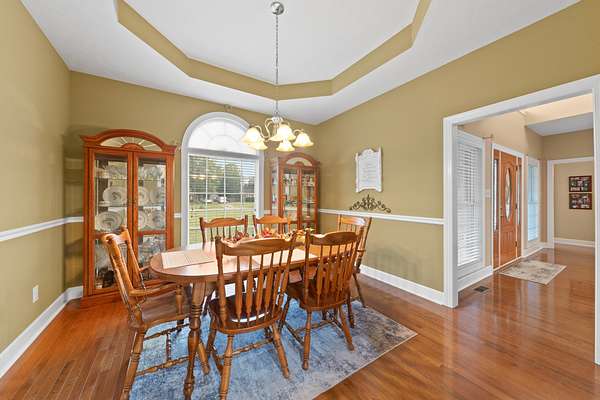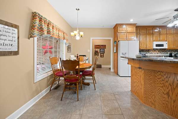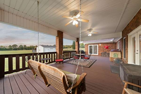 Set on 5.8 beautiful level acres, this custom all-brick home offers over 2,000 sqft of comfortable living space with 3 bedrooms and 2 full bathrooms. Built in 2004, the property has been well cared for and recently updated with a brand new roof. The grounds feature a beautifully manicured lawn and landscaping, providing both seclusion and a welcoming setting. A 2-car attached garage, a 30x50 3-bay detached shop, and a large lean-to off the shop offer plenty of room for storage, hobbies, or work. Inside, the home is filled with thoughtful details and quality finishes. Hardwood floors run throughout, adding warmth and character. The bedrooms feature tray ceilings, giving each space an added touch of charm. The primary suite includes a spacious bathroom with double sinks for convenience and a walk-in closet. Outdoor living is just as inviting as the interior. A covered front porch to welcome your friends and family and a covered back porch provide relaxing spots to enjoy the peaceful surroundings perfect for entertaining or unwinding at the end of the day. The concrete driveway with extra parking ensures plenty of space for family and guests alike. This property blends privacy, practicality, and comfort in one well-rounded package. Call today for your private tour!