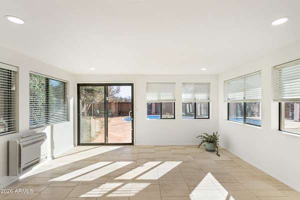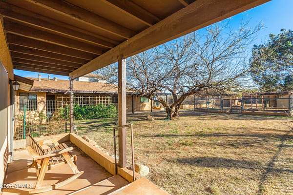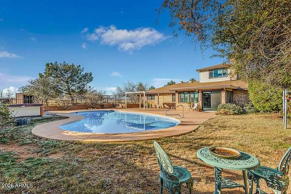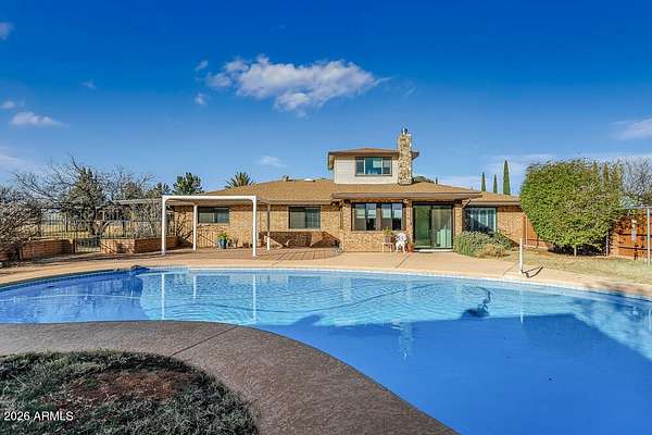 Welcome to this stunning, yet charming home that will captivate your every attention as soon as you step inside. This beautifully updated 5-bedroom, 3.5 bath home on 1.687 acres and backing Ft Huachuca has it all! Boasting a solar heated saltwater pool, a furnished 957sqft guest house, large workshop, and with mountain views. A large formal living room and dining room with gorgeous built-ins, create a wonderful space for special gatherings. The dream style kitchen is impressive, with the abundance of cabinets, gorgeous granite counters, tiled backsplash and pot filler, most amazing island and complemented with travertine stone tile throughout the home. Adjoining the kitchen is a small dining area, family room and AZ room. A wonderful find is the bonus room upstairs, ideal for an art studio, yoga room and offering the most amazing 360-degree views of beautiful Sierra Vista! Enjoy the gorgeous sunsets from the small rooftop balcony. A brand-new HVAC system has been added to the home providing comfort and peace of mind The attached furnished 1 bedroom, 1 bath guest house is ideal for family or could be a great income producer. Located in the beautiful Ranchos Carmela Estates, minutes from Ft Huachuca, shopping and dining. Come discover all the many wonderful finds that this Home has to offer. Your new chapter stars here!