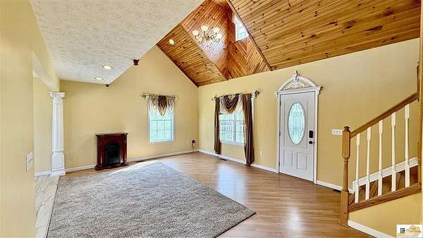 You do not want to miss this one! With spring approaching, imagine yourself in this exceptional home just minutes from Lake Cumberland. Relax on the charming front porch, taking in the quiet, open surroundings that make country living so desirable. Sitting on 2 acres (new survey) with mature trees and views to enjoy. This one-owner home has been meticulously maintained since it was built in 2003. Step into the warm and inviting open living area with vaulted ceiling soaring up to the open loft. The main level offers a large kitchen/dining area, 2 bedrooms, a full bath (beautiful tiled shower) and laundry room. There is another bedroom upstairs and a full bathroom with a garden tub. There is also a work shop (20x30) with wood stove and attached shed. New HVAC in 2025. Call me to set up a showing!