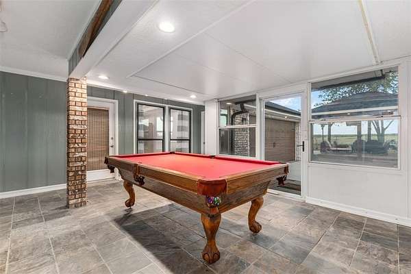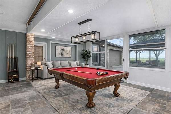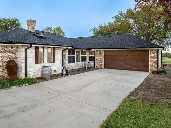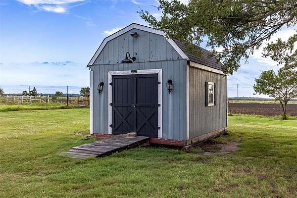Prime Developing area with 4-3-2 home on 2 acres. Located on the Gunter - Celina boarder, between Preston Rd.(Hwy 289) and the Dallas Tollway extension, this totally updated brick-stone home with great curb appeal offers privacy, while being in a developing area. Features include split bedrooms with hardwoods in most all areas. Updated kitchen with quartz counters and huge single sink. NATURAL GAS range, double ovens, dishwasher and over the range microwave complete the kitchen. Breakfast room has updated lighting and 3 windows with plantation shutters that overlook the spacious front and side lawn. Living area is warm and inviting with NATURAL GAS fireplace, updated custom wine shelving, painted judges paneling and plantation shutters. Primary suite is spacious with a door leading out to the sunroom and includes an ensuite with 2 separate granite counters, 2 sinks, 2 closets, 2 linen closets, jetted tub and separate tile shower. The fourth bedroom is another primary sized room with an ensuite and door to the sunroom. All 3 baths have been recently updated. Bonus space is a sunroom with tile floor. All of this sits on 2 acres with landscaped beds, new driveway, wrought iron security gate, pipe and cable fence, covered deck with outdoor kitchen, hot tub and lots of relaxing space. HVAC is updated, and all duct work has been recently professionally cleaned. There is a storage building with electric for all your tools and outdoor equipment, and a fire pit for those chilly nights.