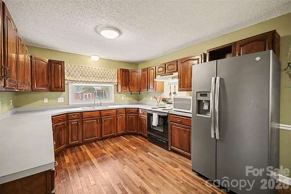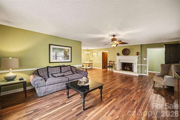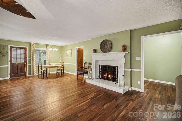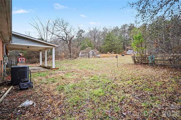 Set on 2 peaceful, wooded acres in Mecklenburg County, this property offers a rare combination of privacy, land, and close proximity to Charlotte-just minutes to the Steele Creek area with no city taxes. The setting feels quiet and secluded while remaining convenient to everyday amenities. The backyard features mature landscaping including two peach trees, one crabapple tree, hydrangeas, and rose bushes, creating a natural and serene outdoor environment. The one-story home offers 1,927 square feet, 3 bedrooms, and 2 full bathrooms. Hardwood floors were added in 2015, with paint and windows replaced in 2012. Buyers can add their own personal touches and updates over time, making this a great opportunity to customize the home to their style. Additional features include a full front porch, covered rear patio, detached carport, and two outbuildings providing added storage or hobby space. The home is served by a shared artesian well and septic system. A whole-house Culligan water filtration system conveys. The property also includes an owned solar panel system.