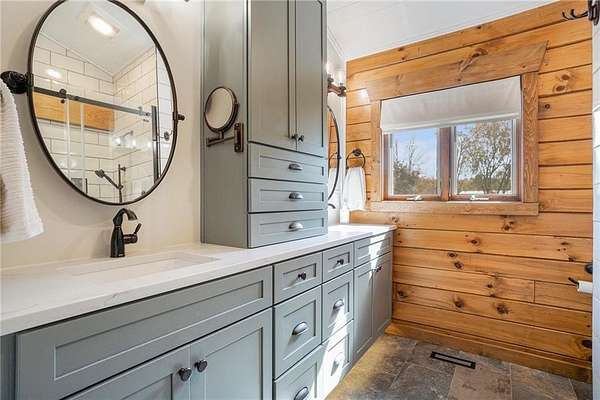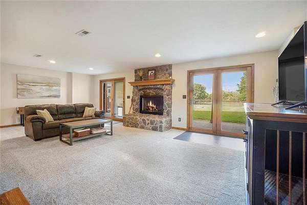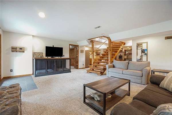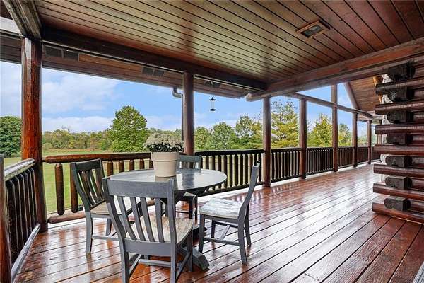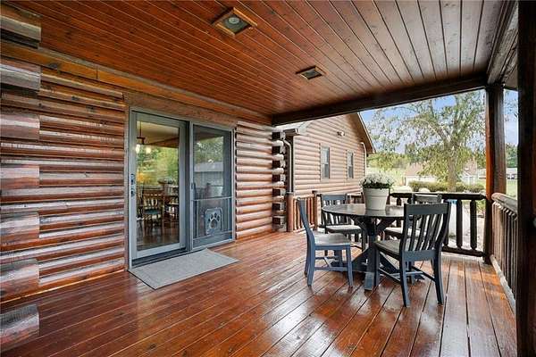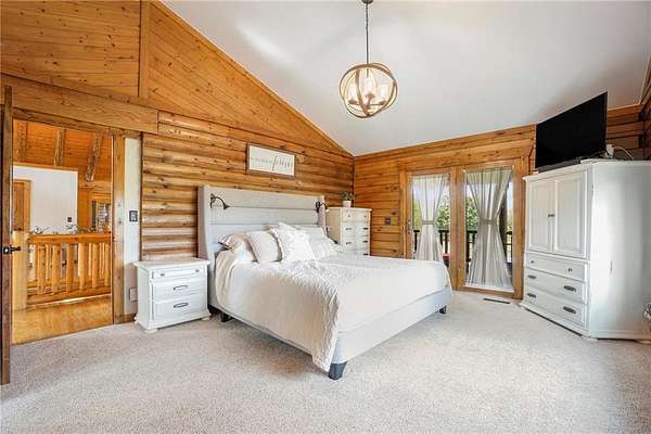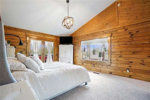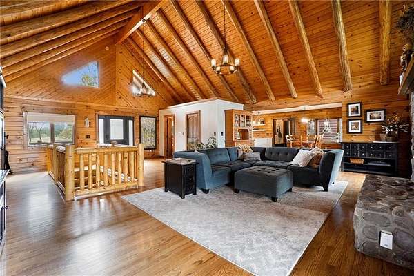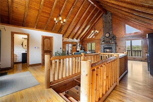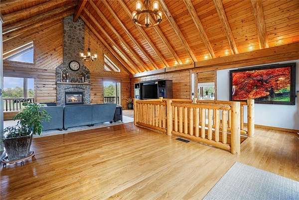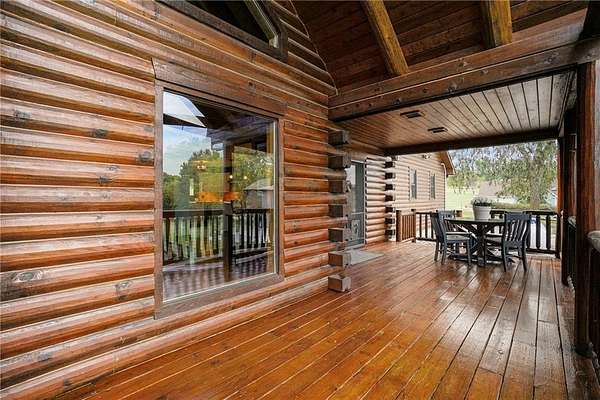 Stunning log home on 3 acres providing a serene atmosphere. Outdoor features include a outbuilding with epoxy floor and electric heat, over 55ft of covered deck space, RV parking with a 30amp plug, geothermal system, a fenced in yard space and fire pit, and plentiful with local wildlife. Inside gives off the welcoming lodge feel with beautiful wood vaulted ceilings, two stone fireplaces, and hardwood floors throughout. The country style kitchen is newly updated with white cabinets and stainless steel appliances. Primary Bedroom has new carpet with a walk in closet and remodeled ensuite with vanity cabinet organizer cabinets. Finished basement includes two additional bedrooms, an additional family room, and wet bar. Well maintained and ready to be your forever home.