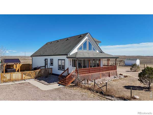 Welcome to your own private slice of Northern Colorado! Located on 35 fully fenced acres in Wellington, this recently updated 2-story home with a full basement offers space, comfort, and incredible panoramic mountain views. 3 BR (ensuite bedroom upstairs) & 3 BA, this property has it all! The open kitchen includes quartz counters, stainless steel appliances, & modern finishes. Your primary 5-piece bathroom features a stand-alone tub offering a comfortable retreat at the end of the day. Incredible views from the upper level 21' x 8' loft. The wrap-around porch is the perfect place to relax and enjoy the unobstructed mountain views, morning sunrises or evening sunsets. Stargaze while relaxing under the new gazebo with a new hot tub. The property also features a huge 29' x 38' garage, providing plenty of room for vehicles, equipment, recreational toys, or workshop space. Important upgrades include: New 96% efficient furnace & A/C with updated ductwork (2026), water heater (2024), Culligan water softener (2024), whole house filtration system & reverse osmosis in kitchen. Acreage is great for animals, hobbies, & includes a new shed used for hay storage. You'll love the privacy & open space that Northern Colorado is known for. A rare opportunity to own a updated home with acreage, mountain views, and major mechanical updates, all just minutes from Wellington, short drive to Fort Collins & easy commute to Cheyenne.