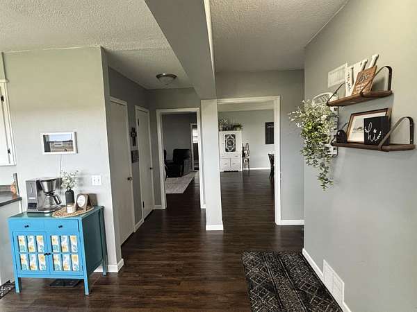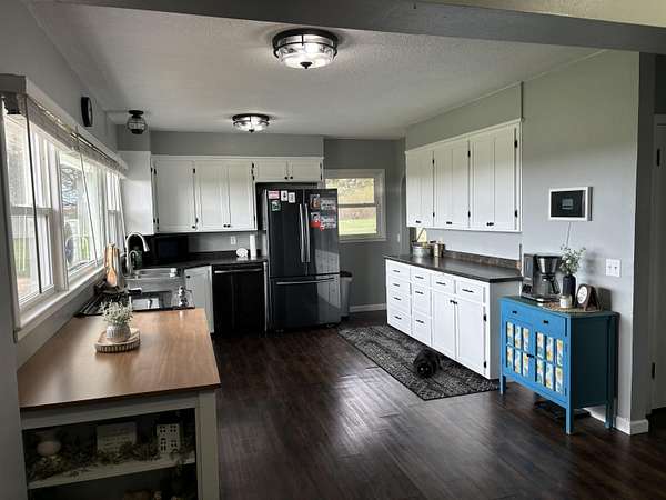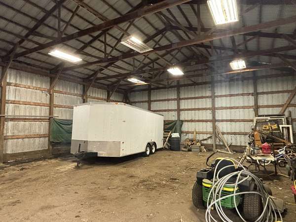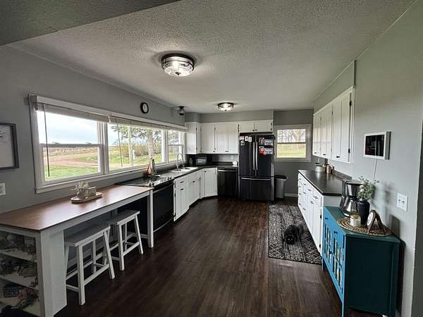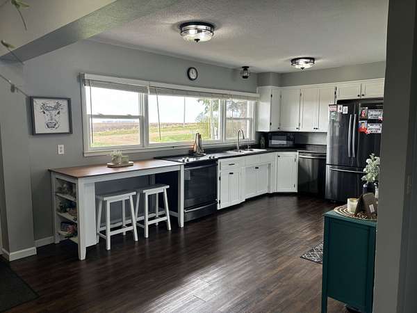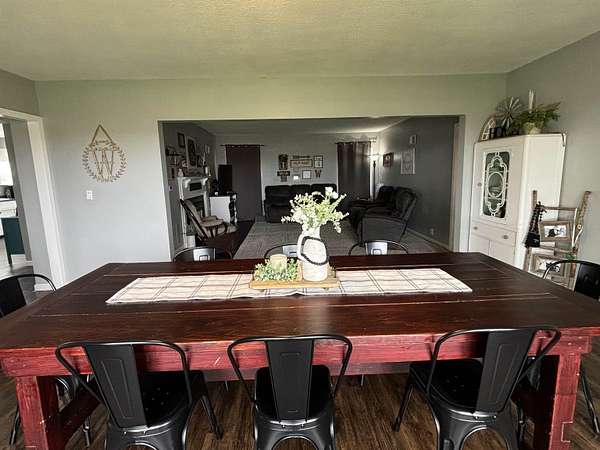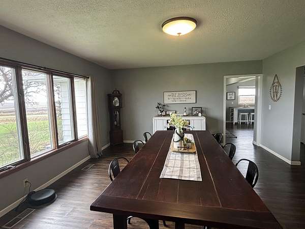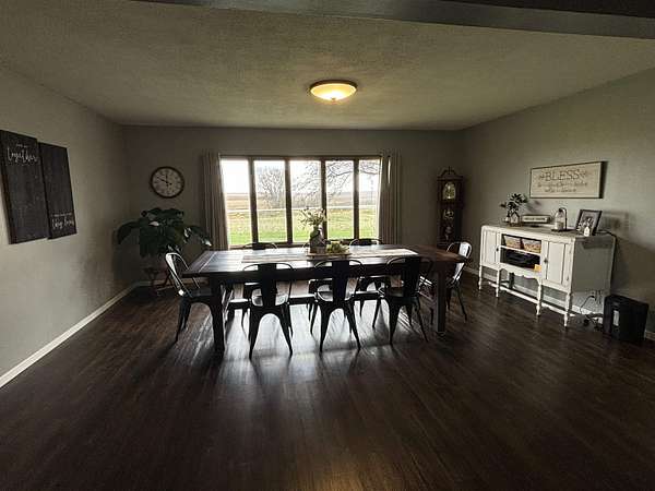 Enjoy the space and serenity of country living with this beautifully updated acreage set on a parcel just off a hard~surface road with the mature trees giving protection. Inside the home features comfortable bedrooms along with one full and one half bath on the main level. The layout is inviting and functional, highlighted by a spacious dining room ideal for gatherings and a warm welcoming living room complete with a wood~burning fireplace ~ for perfect cozy evenings. The partially finished basement expands your living space with a family room, an additional half bath, and a utility room with laundry. Outdoors, you'll find a large 40' x 53' metal pole shed perfect for storage, hobbies, or work space, along with a patio area ready for enjoying quiet mornings or evening sunsets. This property offers the ideal blend of comfort , space, and charm..