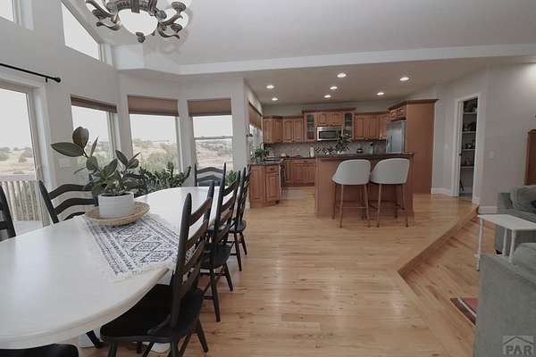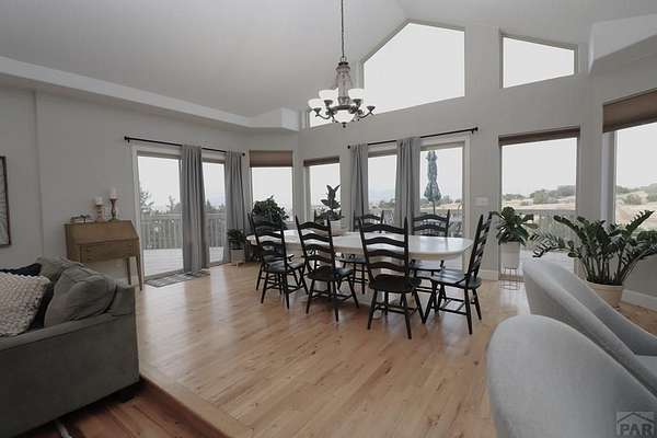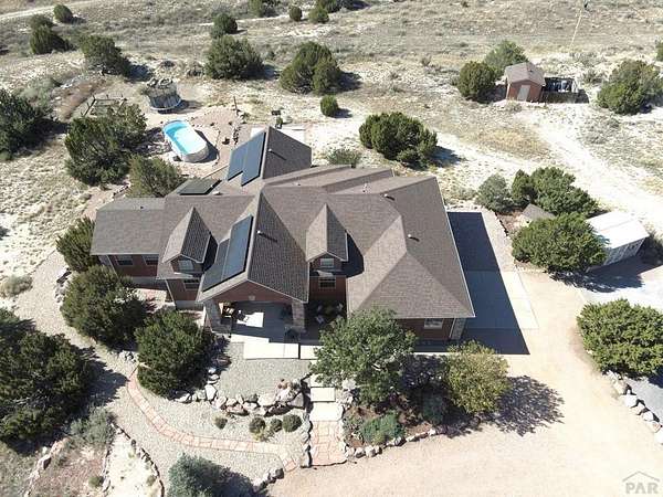 Experience elevated living in this beautifully crafted 6-bedroom, 4-bath custom home designed to capture sweeping views of the entire wet mountain range. From the moment you arrive, you'll be drawn to the home's elegant curb appeal and thoughtful architectural details that blend comfort with sophistication. Step inside to find an inviting open-concept layout filled with natural light. The spacious great room features large picture windows that frame the incredible vistas-perfect for relaxing or entertaining guests. The gourmet kitchen offers custom cabinetry, granite countertops, and stainless-steel appliances, creating a seamless flow between cooking, dining, and gathering spaces. The primary suite serves as a private retreat with a spa-inspired bath and its own access to the amazing views. With six total bedrooms and four bathrooms, this home provides plenty of space for family, guests, or a dedicated office, gym, or hobby room. You will love how the paid off solar panels provide a $11 monthly electric bill. Enjoy peaceful mornings and vibrant sunsets from the expansive outdoor living areas-ideal for entertaining or simply taking in the breathtaking scenery. Perfectly combining quality craftsmanship, comfort, and incredible views, this home offers a rare opportunity to own a one-of-a-kind property that truly stands out.