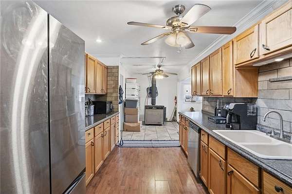 - Attic Storage, Ceiling Fans, Pantry, Skylight, Smoke Detector, Split Floor Plan, Walk-In Closets