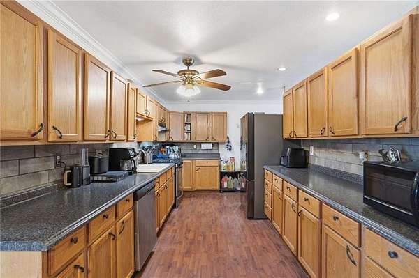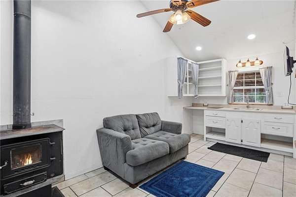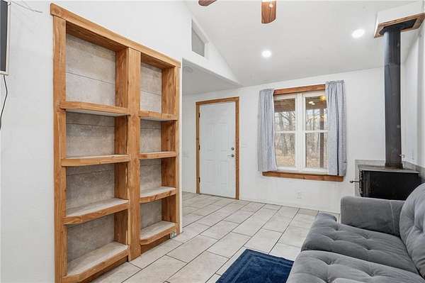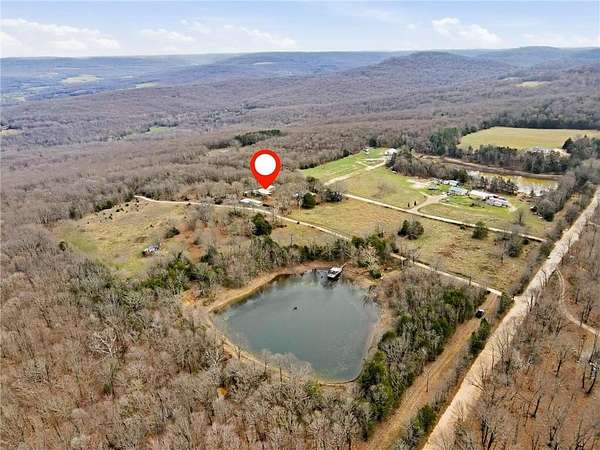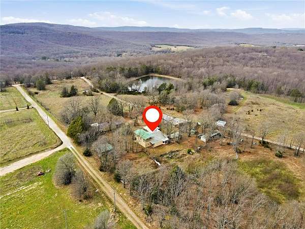 Tucked on 17 acres of pasture and woods, this 3-bed, 3-bath property is a rare find for those craving space, self-sufficiency, and room to grow. The main home features a sunroom perfect for seedlings, a huge pantry, vinyl plank and tile flooring, wood cabinets, and central HVAC plus wood-burning stoves for backup heat. The second story — added by a contractor — includes a third bedroom with its own wood stove, walk-in closet, and double-pane windows. Double porches, metal roof, a fruit orchard, and a stocked pond with catfish and koi complete the outdoor picture. The 320 sq ft studio apartment is perfect for guests, rental income, or a home office. The workshop/garage has power, built-in benches, and ample storage. A chicken coop, fenced pastures for horses or cows, and the greenhouse — previously used for commercial growing — make this a hobby farmer's or small business owner's dream. All appliances except the refrigerator convey, plus the chest freezer. 8 min to Winslow, 15 min to West Fork, 35 to U of A.