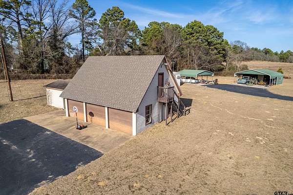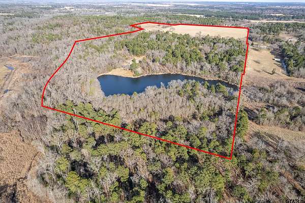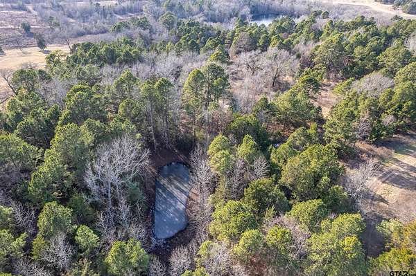 106.593 surveyed acres in East Texas with frontage all along County Road 3147 in northern Smith County, offering an excellent combination of pasture, timber, and water. The property features an estimated 60% wooded acreage and 40% improved pasture, making it well-suited for recreational use, livestock, or a future residential estate. A standout feature is the spring-fed lake/pond measuring approximately 5.5+- acres, providing both scenic appeal and functional water for recreation and wildlife. Cleared lake frontage, established pasture lanes, and existing road access enhance the overall usability of the tract. Two residential structures are present. The primary home offers potential for renovation or updating, while a secondary homesite near the lake includes structures that are likely best suited for removal and redevelopment, allowing a buyer to take full advantage of the lake setting. A shop/outbuilding remains usable and provides practical utility for equipment storage or ranch operations. The property is located within a rural residential and recreational corridor, surrounded by larger landholdings, farms, and homesteads, making it attractive to long-term landholders, recreational buyers, or estate-scale residential purchasers seeking acreage with a water amenity. Overall, the property is priced primarily on land value, with existing improvements offering functional support rather than driving value--an excellent opportunity to acquire a sizable East Texas tract with water, privacy, and future potential.