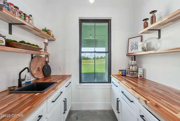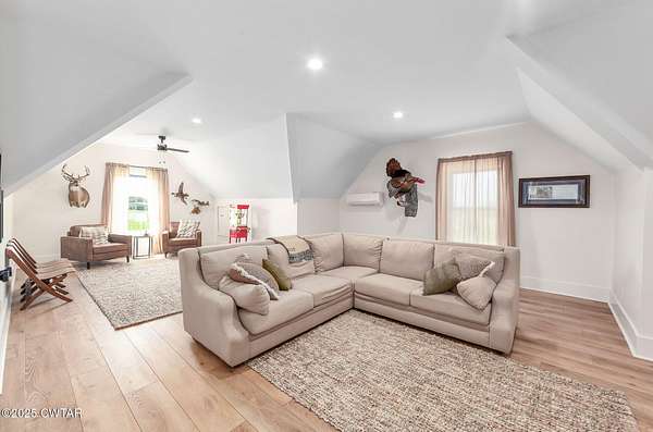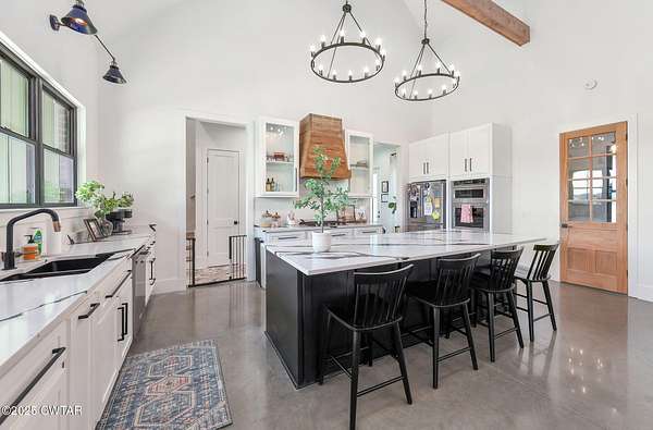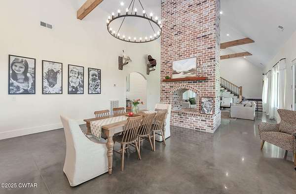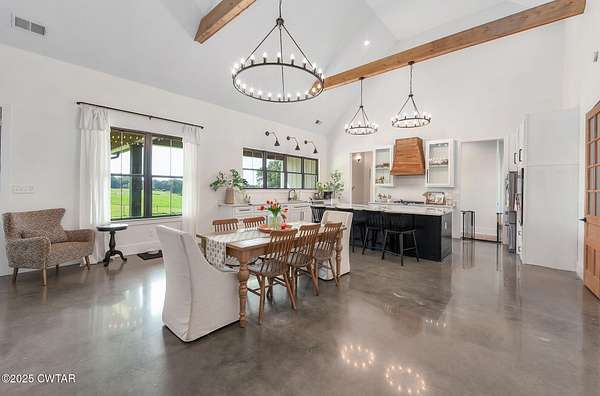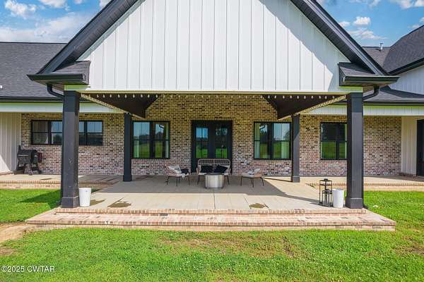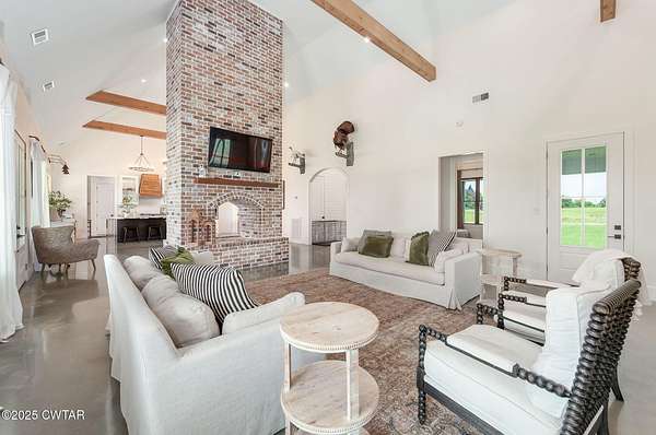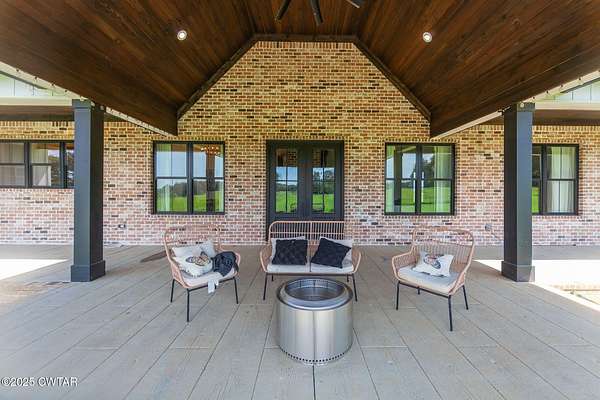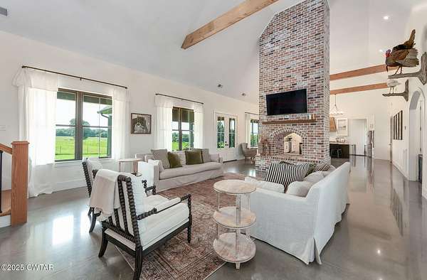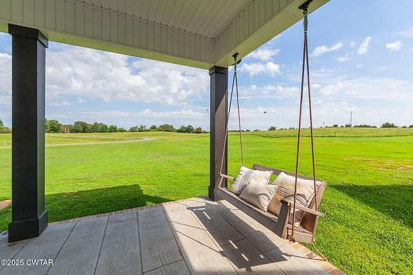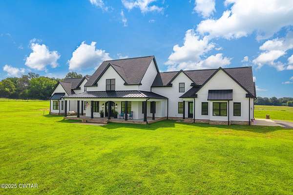 This custom-built luxury modern farmhouse offers the perfect blend of elegance and comfort, set against serene Crockett County country views on 5.13 sprawling acres. Step into a grand shiplapped foyer that opens to an expansive open-concept floorplan with wood-beamed ceilings and custom Pella windows that flood the space with natural light. The designer kitchen is a showstopper, featuring quartz countertops, an oversized island, a standard pantry, and a spacious butler's pantry with a prep sink-ideal for entertaining and daily convenience. With 2 bedrooms on the main level, including a large primary suite with a dreamy soaking tub, tiled shower, and a massive walk-in closet, this home is as functional as it is beautiful. A dedicated office on the main floor offers a quiet and productive workspace. Every bedroom boasts walk-in closets, and upstairs you'll find two more bedrooms plus a private Rec room with its own full bath-perfect for secondary living. Thoughtful details like brick flooring in the laundry and friend's entrance, a welcoming wraparound porch, and a massive rear covered porch for outdoor entertaining make everyday living exceptional. The large two-car garage is complemented by an additional toy garage/workshop, offering great flexibility for storage or projects. Modern conveniences include spray foam insulation throughout, a whole house generator, and an in-garage storm shelter for peace of mind. Custom-built in 2023 and located just minutes from State Highway 412, this one-of-a-kind retreat offers luxury, privacy, and practicality in perfect harmony. Contact Rachel Fullington for more info and a private showing