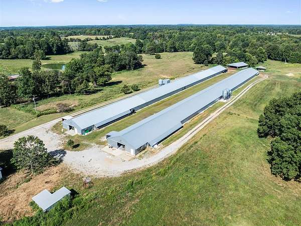 Beautiful 61+/- acre poultry farm in Grayson County. This entire property has been meticulously kept. Two Poultry houses 40' x 520', currently not contracted with an integrator. Originally used as egg houses, but converted to pullet/rooster houses in 2021. Barn #1 was built in 1996 and barn #2 was built in 2009. Generators were new when the houses were first built (1996 & 2009). Chore Tronics #3 controllers installed this year (2025). Previous egg rooms, make for great control rooms and additional storage. Tenant house with kitchenette and a seperate bathhouse with some additional storage. There is a free standing walk in meat cooler. Property offers several barns and outbuildings, including Combination barn, Hay barn and Stock barn. Majority of property is fenced, property currently has cattle on it. There are three ponds on property, with a screened-in gazebo overlooking the largest pond. Home offers 3 bedrooms, 2 full bathrooms 1960 +/- sq ft, along with a bonus room. Eat-in kitchen with kitchen island, large laundry/utility room with additional cabinetry, counter space and sink. Large covered front porch and back deck. This is a beautiful place and a great opportunity.