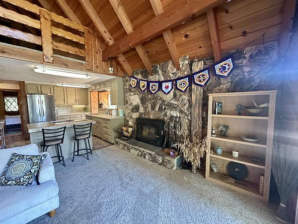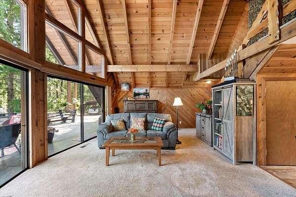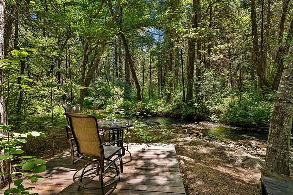 Welcome to your private creekside retreat along the banks of Wagon Creek in Mt. Shasta, where 2.2 acres of meadows and forest surround over 200 feet of trout-filled creek frontage. This charming cedar A-frame cabin features a dramatic wall of windows, vaulted ceilings with exposed beams, and knotty pine accents that bring the outdoors in. The open kitchen offers a view of Mt. Shasta from the stove, while the cozy living area centers around a high-efficiency Blaze King wood stove. With two bedrooms downstairs and one upstairs--each with its own outdoor access--this home offers a flexible and inviting layout. Step outside to enjoy al fresco dining on the expansive deck, soak in the Arctic spa hot tub, or climb up to the secluded treehouse with treetop views. The property also includes an artist studio with wood stove and patio, a guest bonus room over the detached two-car garage, a woodworking shop, solar with battery backup, raised garden beds, fruit trees, and more. Just minutes from downtown Mt. Shasta, the ski park, lakes, and trails, this special property is ideal as a year-round residence, a nature lover's escape, or an artist's sanctuary.