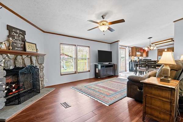 Inside, the home features an open-concept layout with a large living area centered around a cozy fireplace—perfect for gathering and everyday living. The home has been immaculately cared for and is truly move-in ready, offering both functionality and charm throughout.