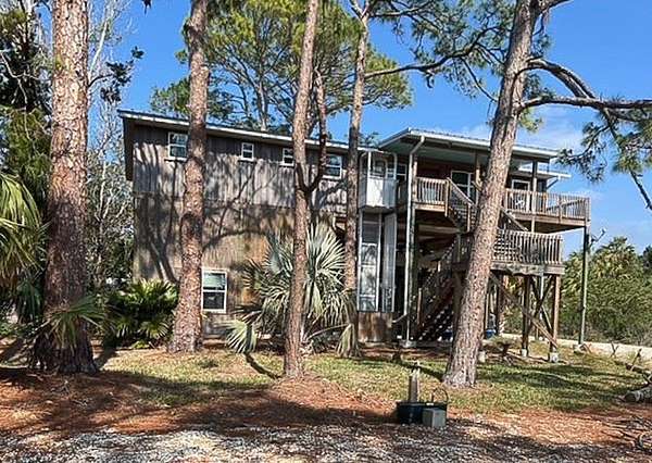 I'M GORGEOUS INSIDE!!! This 3-Bedroom, 2-Bath STILT HOME with ELEVATOR and ground-level 750-sf WORKSHOP & STORAGE AREA is worth a look. The 1.52 Acres includes 0.83 acres with the house and another 0.69 acre lot as buffer to the east. The property extends south into the salt marsh where plush mangroves thrive and support myriad sea critters as the tide comes in and goes out, gradually adding land mass, one grain of sand at a time. Built in 1977, the house originally sat about 6 feet above mean high tide. In 2017, it was elevated to approximately 18 feet above mean high tide and fully renovated with solid wood kitchen cabinets, marble countertops, a custom solid wood pocket door to the utility room-pantry, new walk-in showers with glass doors in both bathrooms and luxury vinyl plank flooring throughout. Talk about a bird's eye view! Look through the treetops as you prepare a meal or as you eat at the dining table or as you visit with friends on the screened porch. Other special features include a whole house water treatment system, a full-size garage door into the storage area, and a portable generator. This lovely home is located slightly more than a mile from downtown Cedar Key, an easy golf cart ride to the restaurants and shops. And you did notice, didn't you? It has an elevator!
