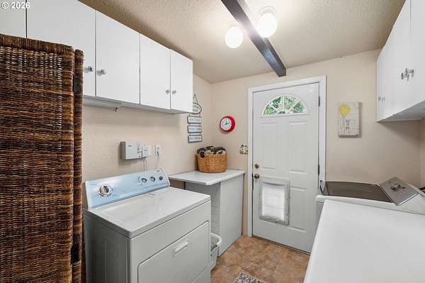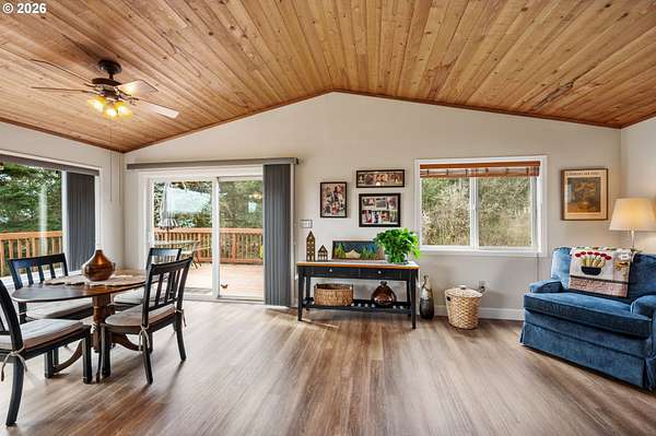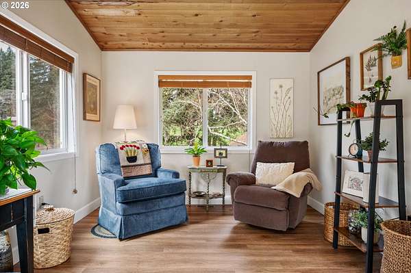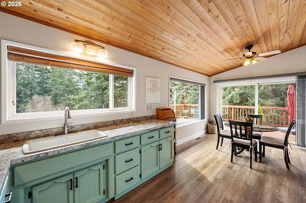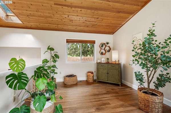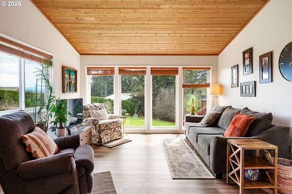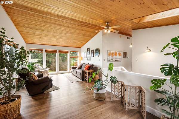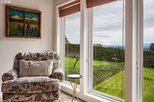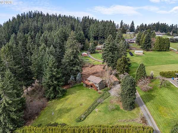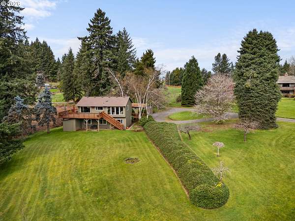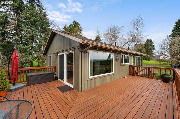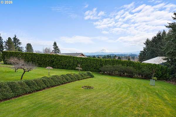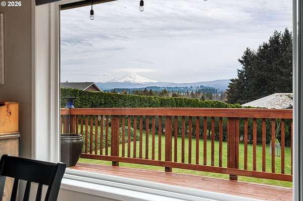 Tranquil countryside Damascus living on a picturesque 2 acres with sweeping Mt. Hood views! Set back on a private road, this lovingly cared for, beautifully designed 3 BR, 1.5BA home will capture your heart and dreams. The open, airy main level maximizes the surroundings and views with windows at every turn including floor to ceiling windows in the living room, vaulted wood ceilings, & natural tones and finishes. Great layout that blends openness with cozy spaces. Great for entertaining, step out to your large wrap around deck overlooking the expansive lawn and beyond to territorial & Mt. Hood views. A charming kitchen, new LVP flooring and a recently remodeled bathroom round out the main level. Downstairs, you'll find all 3 BRs conveniently located on one level in addition to a good sized laundry room, bathroom, and utility closet. The primary bedroom is ready to transform to a primary suite with an attached room plumbed for a bathroom. Key updates include: 30 year roof on home in 2019, recent exterior paint, updated double pane windows, and more. Outside you'll find a shop with power, as well as ample room for both your tinkering equipment and added storage. Added convenience found with a built in riding mower garage under the deck & adjacent tool shed. Field behind home potentially provides space and opportunity for a shop or perhaps a pool. Conveniently located less than 10 minutes from Damascus town center and feeding to popular Sam Barlow High School. Come fall in love with this special property!