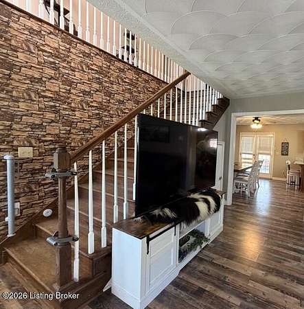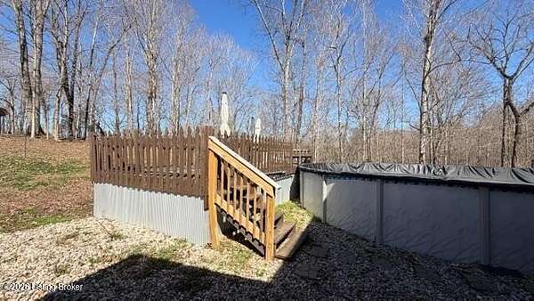 Serene country atmosphere awaits you with this lovely four bedroom two & a half bath vinyl Cape Cod style home with two car attached garage situated on five acres in New Haven, Ky. Home offers 2300 sq. ft of spacious & comfortable living space. Enjoy your morning coffee as you relax on the large covered front porch. Enter into the nice Living Room with laminate flooring. Kitchen offers nice cabinetry, granite countertops, stainless appliances & convenient breakfast bar. Desirable main level Primary suite with Bedroom offering laminate flooring & walk in closet. Primary Bath features a tiled walk-in shower. Three additional carpeted bedrooms are housed upstairs along with a full Bath. Venture outdoors to enjoy the stamped concrete sidewalk & porch along with a great patio where you can enjoy scenic views & lots of wildlife. 34x30 barn offers two electric, two stalls as well as a loft. Great above ground pool is perfect for all your outdoor enjoyment. Scattered woods adds to the serene surroundings. Don't Delay! Let's go take a look at this wonderful home today!