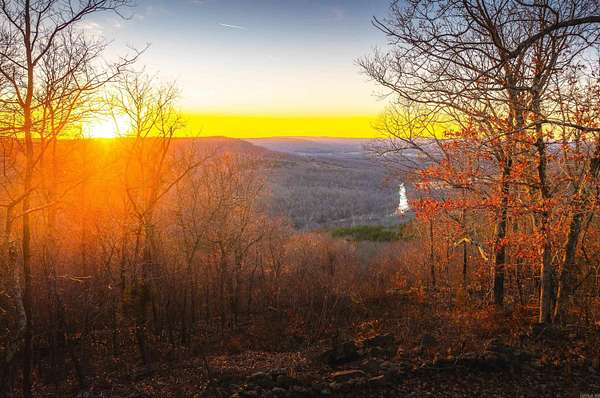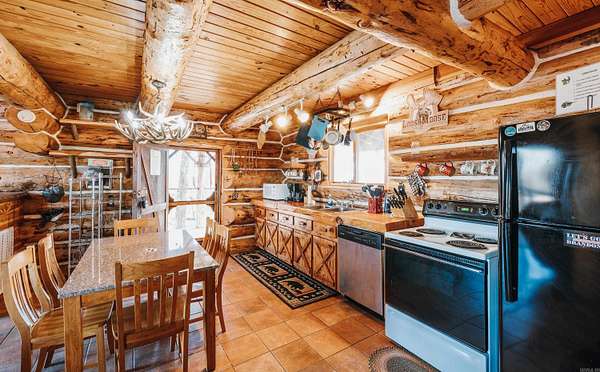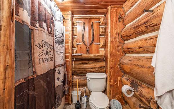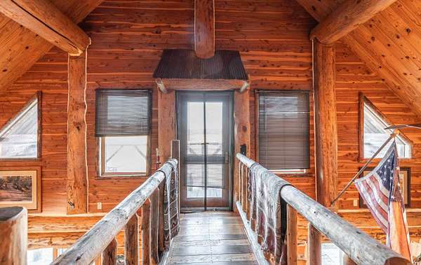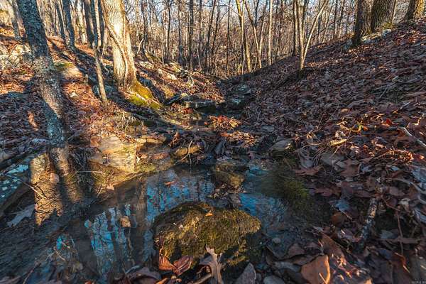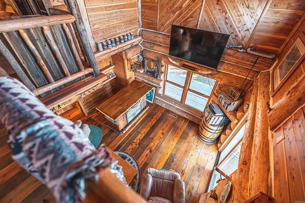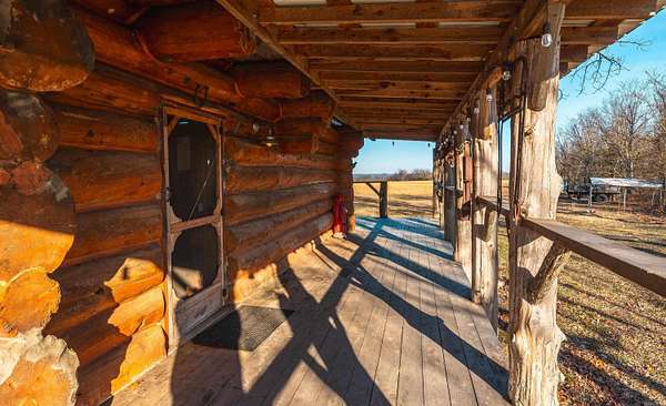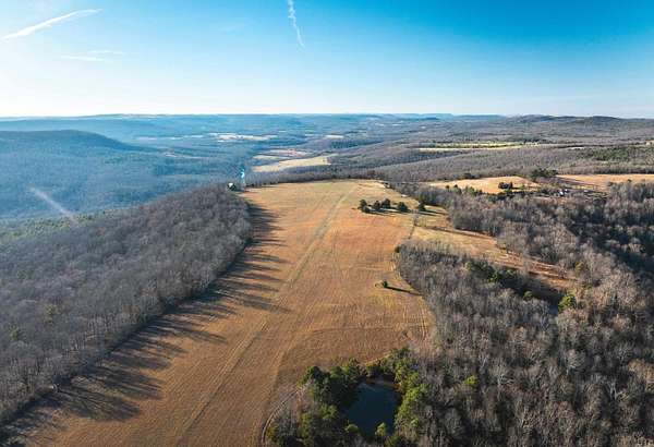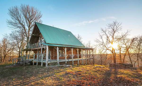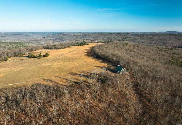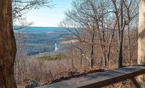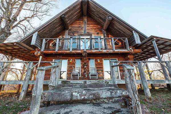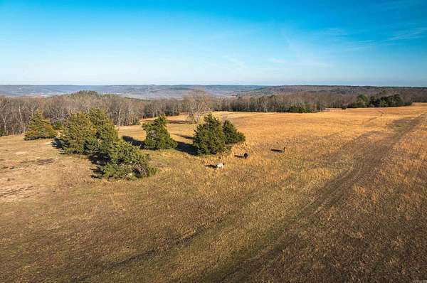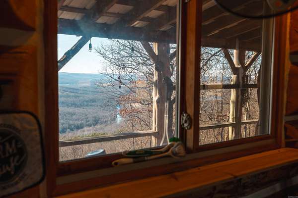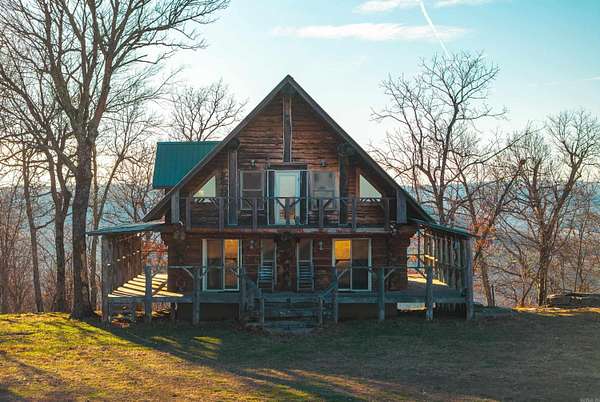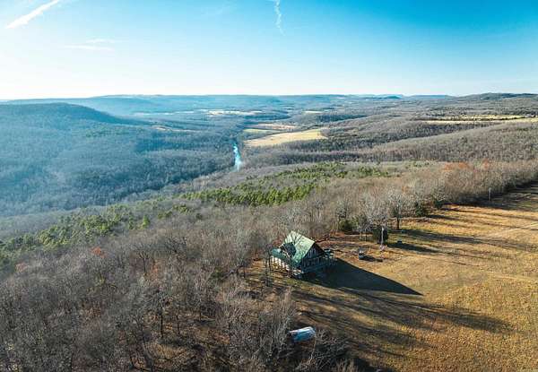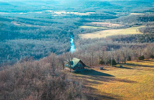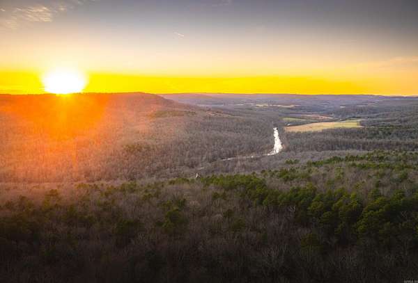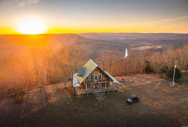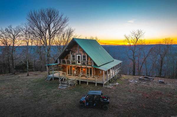 Stunning 167-acre property featuring a gorgeous log cabin with Douglas fir logs and red cedar interior walls and floors, 1 bed, 2 bath. Huge stone staircase, a stone fire pit, and a full wrap-around porch with breathtaking sunrise views across the 30-acre mountain top pasture known as Henderson Point. This pasture is right at a 1/2 mile long and was formerly a private airstrip. The back porch offers world-class sunset views over the middle fork of the Little Red River and the remainder of the property. Two stocked ponds with bass and bluegill, hunting opportunities for deer, turkey, and bear. Appliances stay. Some furniture and decor is slightly different than what’s pictured. 20-foot tall bluff. Plenty of room to build your dream home, plane hangar, or shop with the same stunning sunset views. Cabin is on rural water. Fiber internet is available.