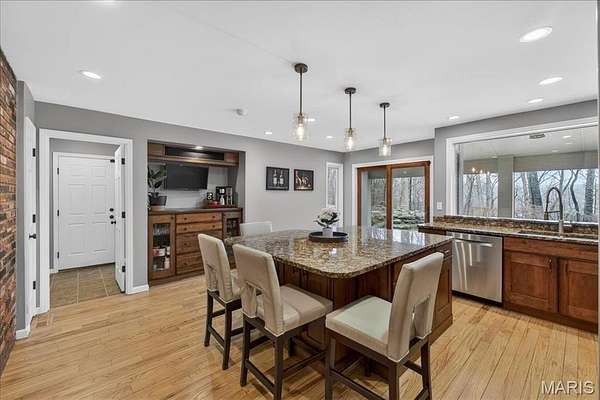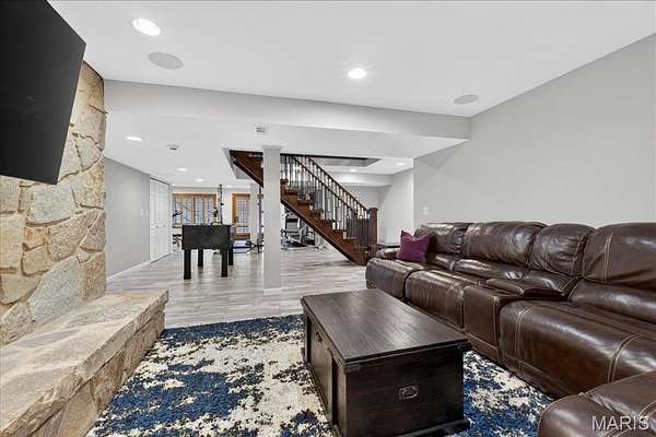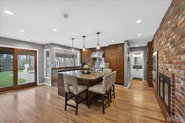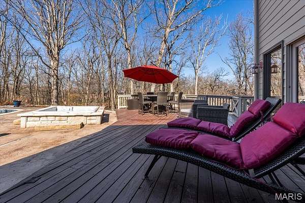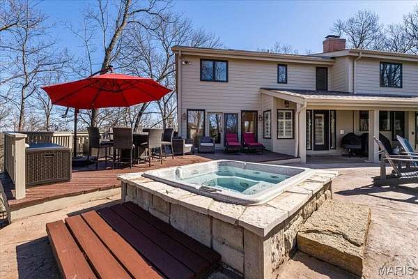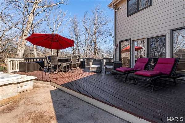Welcome to 1645 Trotting Trail Road, an exceptional estate set on 2 private, picturesque acres in the heart of Clarkson Valley in Kehrs Mill Trails Subdivision. With over 4,900 square feet of thoughtfully designed living space, this residence offers a refined blend of luxury, comfort, and effortless indoor-outdoor living. Featuring 4 spacious bedrooms and 3.5 beautifully appointed bathrooms, every detail has been carefully curated. A dramatic two-story entry and great room create an immediate sense of scale and elegance, anchored by a beautifully renovated open custom staircase with wrought iron spindles. Solid hardwood floors flow seamlessly throughout the main living areas, adding warmth and sophistication. The renovated kitchen is a true showpiece, featuring custom cabinetry and high-end appliances including a 6-burner Wolf gas range and built-in refrigerator—perfectly suited for both everyday living and elevated entertaining. The main-floor primary suite serves as a serene retreat, complete with a spa-inspired ensuite featuring dual vanities and a generous walk-in closet. Just beyond, step directly outside to your own resort-style oasis—where the pool and hot tub are only steps away, creating a seamless connection between indoor comfort and outdoor luxury. Designed for both relaxation and privacy, the outdoor spaces are truly exceptional. Mature trees and expansive grounds provide a sense of seclusion, while the sparkling in-ground gunite pool and hot tub offer a tranquil setting reminiscent of a private resort. At the front of the home, a spacious covered deck invites quiet mornings with a cup of coffee and peaceful views of the neighborhood lake—an idyllic place to begin or end your day. The finished lower level further enhances the home’s lifestyle appeal, featuring an additional sleeping area, a dedicated fitness space, and a full bath complete with a steam shower—perfect for unwinding after a workout or creating your own in-home wellness retreat. For those seeking a touch of charm and self-sufficiency, the backyard chicken coop offers a unique farm-to-table experience with fresh eggs and a bit of country living—without sacrificing luxury. A rare opportunity to experience privacy, luxury, and lifestyle—all just minutes from everything Chesterfield Valley has to offer in award-winning Rockwood School District.