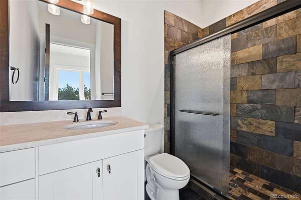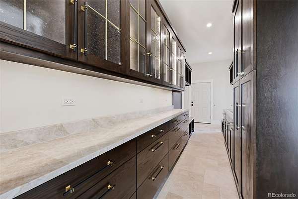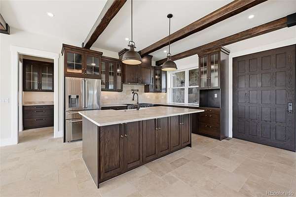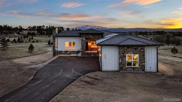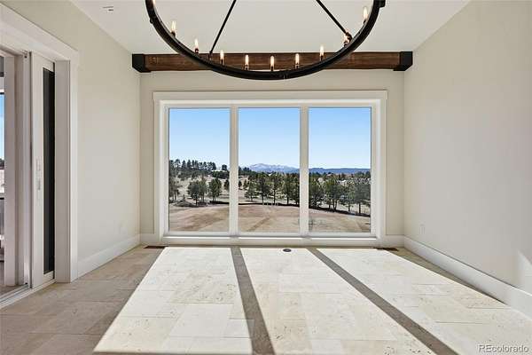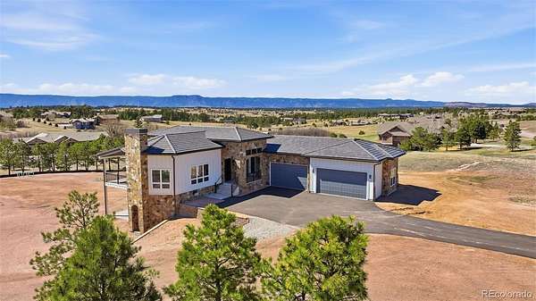 A Mark Beery custom design home on one of the remaining sites in beautiful Settlers Ranch. Views of magnificent Pikes Peak morning, noon and night. Mark's standard features are extras in other custom-built homes: travertine tile surfaces, solid oak doors, milled cabinetry, and retractable window walls, just to name a few. This two-level home features a Master Bedroom Suite on the first floor and three (3) additional bedrooms on the lower level, Ten (10') ceilings allow extra daylight. The Family room features a wet bar and design options galore! Each of the lower-level bedrooms has its own walk-out patio. The four (4) car garage expands to 6 spaces if tandem parking is needed. GREAT, GREAT, Storage possibilities.