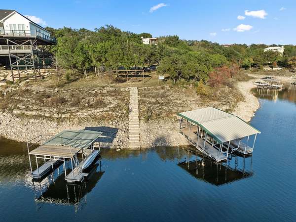 Rare opportunity to build in a peaceful lake area setting with beautiful panoramic views. This .382-acre mostly cleared lot at 16453 Lake Loop offers a ready-to-build canvas overlooking Lake Travis, where breathtaking sunsets and views of sailboats drifting by create a truly special setting. Perched high above the waterfront, the property captures expansive lake views while still providing privacy and natural Hill Country charm. The fenced lot includes an existing two-car garage structure that remains on site, offering convenient storage or potential use during construction. With much of the clearing already completed, the lot is well positioned for a custom dream home designed to take full advantage of the scenic surroundings. Ideally located just off 620 near shopping, restaurants, and within Lake Travis ISD, this property offers the perfect balance of tranquil lakeside living and everyday convenience.