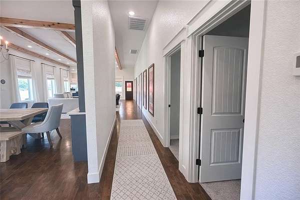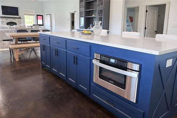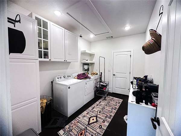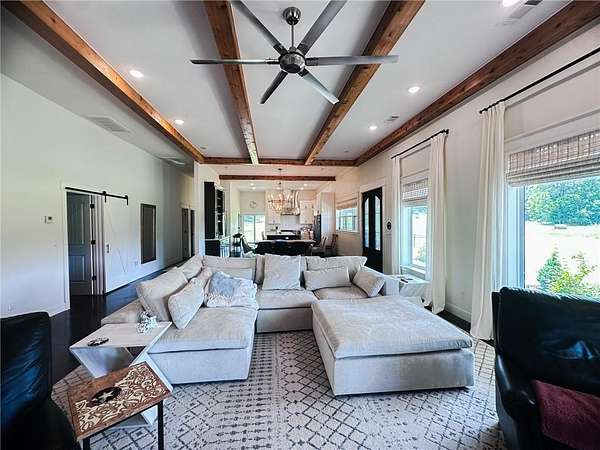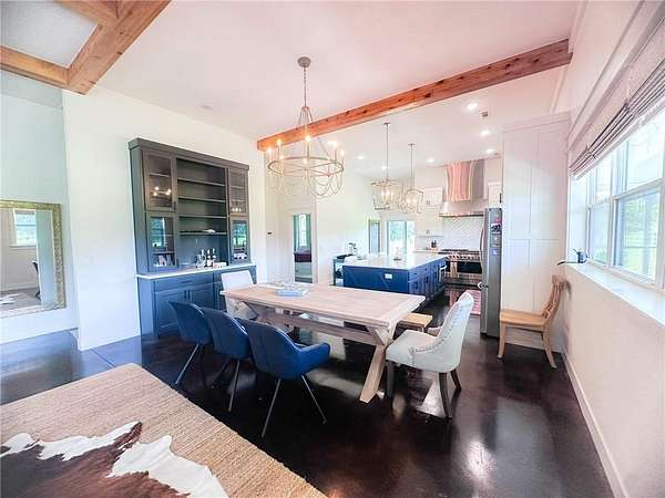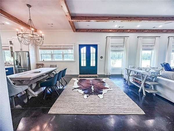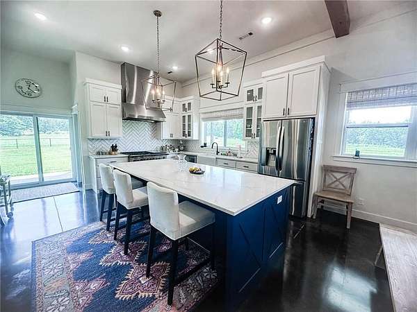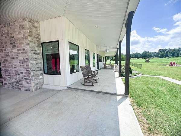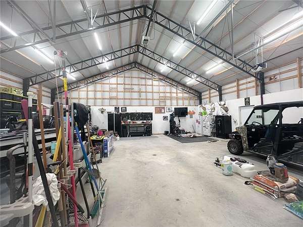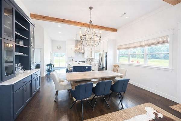 Welcome to your private country retreat—where modern farmhouse style meets comfort, functionality, and wide-open space. This thoughtfully designed home features a professional-grade Fisher & Paykel 5-burner range with griddle, perfect for the home chef, along with a FamilySAFE storm shelter for added peace of mind. Outdoor living shines with an expansive 1,786-SF covered patio overlooking a fully fenced 5,340-SF yard, ideal for entertaining, pets, or play. Exceptional outbuildings include a 1,480-SF detached garage with three drive-in doors and a 3,430-SF pole shed, offering endless storage, hobby, or workshop possibilities. Set on beautifully maintained acreage with panoramic views, wooded privacy, and a stocked 0.5-acre pond, this truly one-of-a-kind property delivers the perfect balance of luxury, utility, and serene country living.