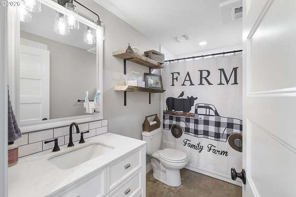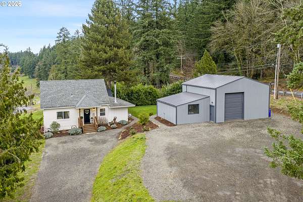 This modern farmhouse sits on two usable acres with scenic views, a detached shop, and a nicely updated interior and major systems, offering an ideal balance of country living with everyday convenience. The main-level primary suite provides ease of living, while the thoughtful layout supports a wide range of lifestyles. This 4-bedroom, 3-bath home blends modern finishes with timeless farmhouse style. The kitchen features quartz counters, ample cabinetry, a walk-in pantry, and a functional layout that opens seamlessly to the main living areas. A wide, comfortable staircase leads to two additional well-proportioned bedrooms, while the finished basement offers a flexible space for a bonus room, guest quarters, home office, or multi-generational living. Set on flat and gently sloping acreage with open views, the property provides space for gardening, animals, or recreation. The detached shop adds valuable functionality for hobbies, storage, or workspace needs. Major system updates include a replaced waterline from the well to the home, updated interior plumbing, an upgraded pressure tank, and a well that is approximately 5 years old. New Roof scheduled for April 2026. Updated HVAC system, wiring and electrical panel, all vinyl windows, and an updated sewer line from the home to the concrete septic tank. These major system updates offer peace of mind and true move-in readiness. Enjoy the space of country living while remaining conveniently close to the city, schools, and everyday amenities. This is a rare opportunity to own a modern farmhouse with acreage, extensive system upgrades, and a versatile shop all framed by open views.