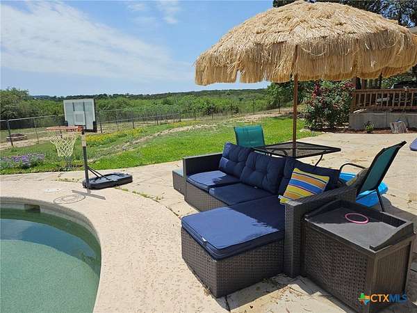 Perfect for an Event Venue or family home, this one of a kind property has endless potential. There is a single-family home and a guest house with a shared well, septic and electric meter. The house is approximately 2100 sq.ft, 4 bedroom 2 1/2 bath and features the approximately 500 square foot guest house, an in-ground pool, cabana, fire-pit and a 2 car carport. Lots of flower beds and a covered back deck to relax on and enjoy the view. This 20 acre parcel is fenced and cross fenced for pets and livestock, and adjoins another 25 acre parcel perfect for building your dream home or more guest cottages, but currently used for grazing and hunting. This listing is part of a ranch with 2 additional houses. All parcels share the existing driveway and private gate with easements for each house. In total there are 80 beautiful ag-exempt acres with 2 ponds, and 5 pastures currently being used for family activities, cattle and mini horses.