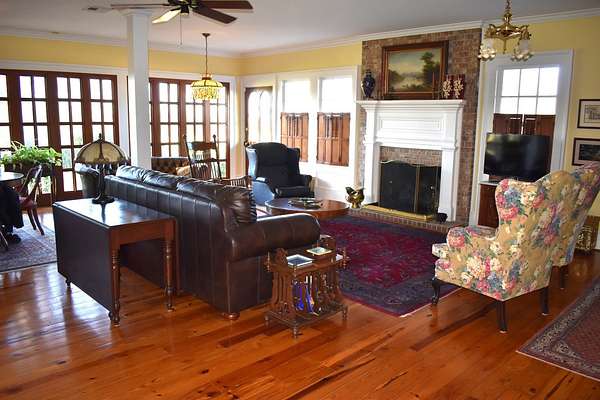 This charming and spacious home sits on 3.6 acres along Bayou Boeuf, surrounded by mature oak trees and blooming azalea bushes that create a peaceful, picturesque setting. Offering 3,875 square feet, the home features 4 bedrooms, 2 1/2 baths and a bonus room ideal for a home office, playroom or extra storage.Classic details include original wood floors, stained-glass windows and two fireplaces that add warmth and timeless character. The layout includes a formal living room, formal dining and a large den with a fireplace, providing ample space for both entertaining and everyday living. The kitchen is equipped with stainless steel appliances and also has lovely granite countertops. There is a large laundry room with a lot of extra storage area.This one-of-a-kind home offers space, character and a taste of peaceful country living, for those seeking both elegance and privacy.