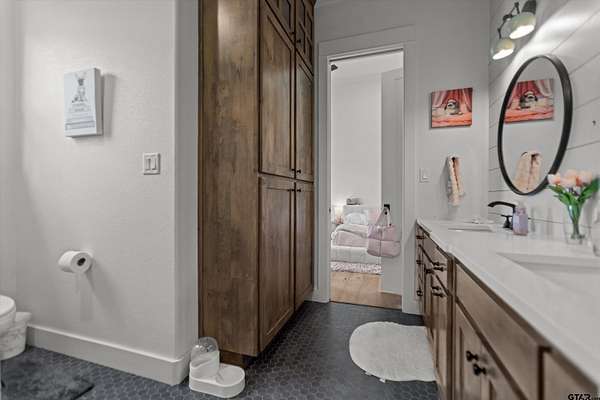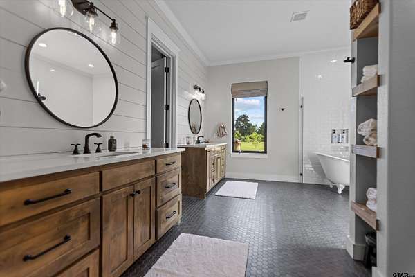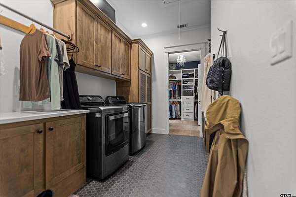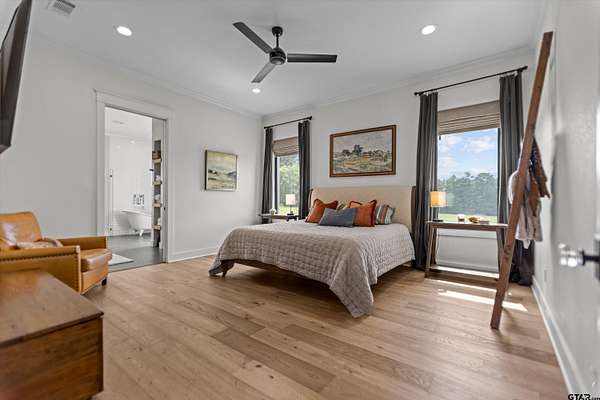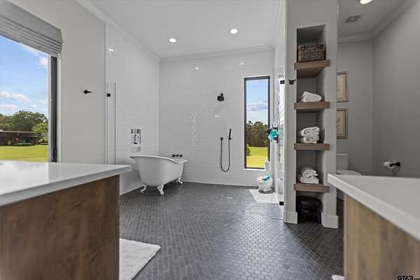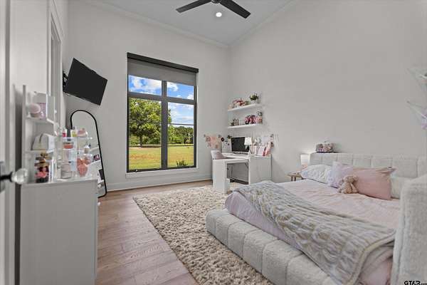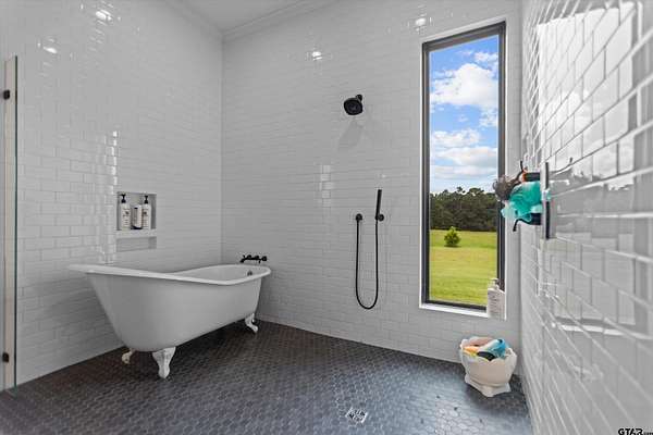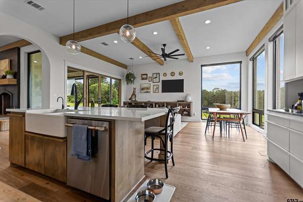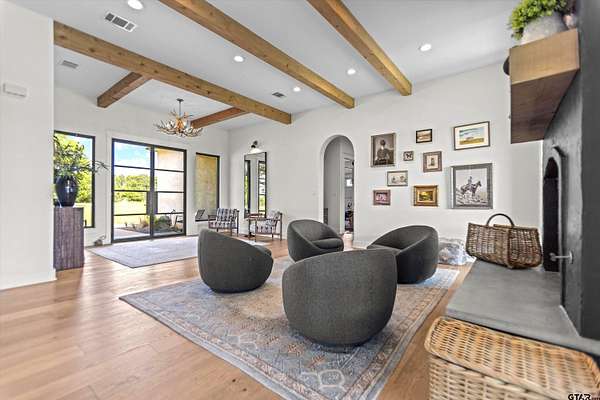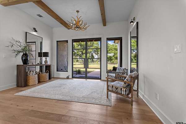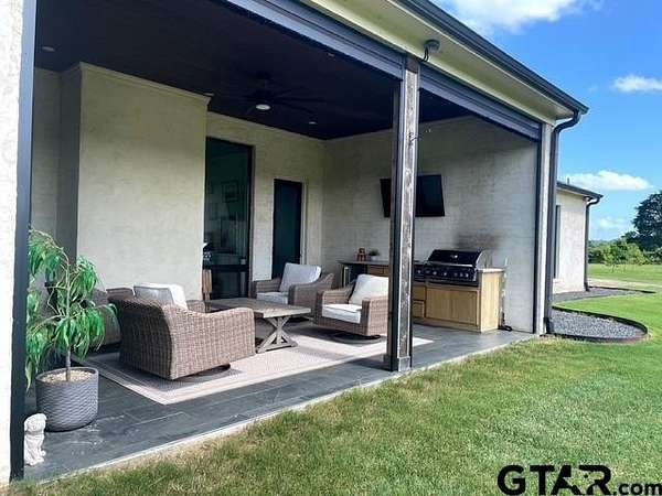 Don't forget the AG EXEMPTION. The most light-filled house you can imagine w/floor to ceiling windows thruout. Modern comfort meets country living, 15 min from South Tyler shopping. Come enjoy this gentleman's ranch w/10 acres fenced so close to town. This 3BR, 2.5BA was perfectly designed to provide all high-end finishes & flow. The home is constructed for durability w/solid masonry exterior, native low-maintenance landscaping, & wheelchair accessible doors. Enjoy all the designer touches on a smaller scale making this affordable luxury. The home was designed w/flow, function & minimalist living. Proper feng shui applied w/physical support of a whole house water filtration system w/reverse osmosis & water softener w/medical grade water providing clean, purified water everywhere, including icemaker & pot fillers. AC ducts have an additional Halo purifier to keep all germs at bay. Both full baths have heated floors you won't want to live without once you experience them. Mstr bath includes an open shower & claw foot tub w/easiest to clean design. Jack & Jill bath doesn't skimp on the tiled shower. Oversized garage includes built-in workspace & gym area.The ranch has a lots of deer & wildlife. All mounted deer are from THIS pasture. Cook's kitchen is designed for actual cooking w/plenty of space hidden away for a clean simple aesthetic. Commercial grade vent hood, convenient pot filler, touchless faucet are in a perfect triangle layout. Both porches are beautifully finished w/slate tile. Motorized screens on the back porch create a 3-season room enjoyable most of the year. There's also a commercial grade grill & side burner perfect for summer cookouts. Enjoy dinner & the most amazing sunsets in Texas. Jack, Three Lakes, Legacy District w/easy access to Brookhill. Home checks every box style, function, & perfect city getaway!