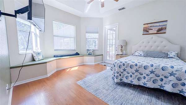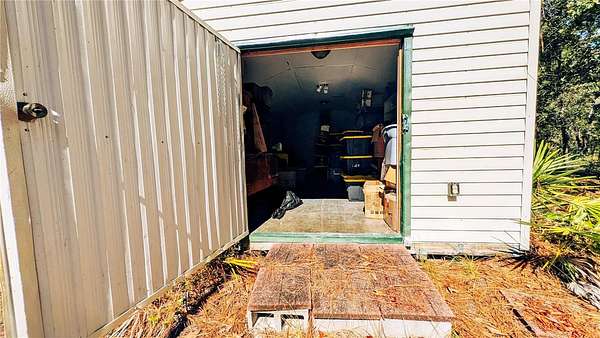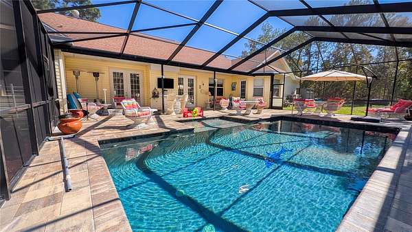 PRIVATE, SECLUDED, CUSTOM-BUILT 5 bedroom 3 bath Estate with an attached 2 car garage nestled on a wooded 2.2 acre lot that sits one lot away from the Hammock Florida state owned property. Acreage and privacy for horses, chickens, goats and other farm animals, and pets. This custom split-floorplan home sits on its own private wooded drive that features 2 Master suites with Ensuite bathrooms. The primary master suite has engineered hardwood floors, 14' tray ceilings, triple bay windows with seating and storage and access to the pool. His and her vanities are complete with a jetted tub for your relaxation and a large quadruple-head walk-through shower. Second Master features a private bath with tub and tiled shower combo. The laundry room with washer and dryer hookup includes a laundry tub and wooden cabinetry. The grand 19' entry captures your attention as you walk into the open living room with engineered hardwood flooring and 14' tray ceilings with a custom stone mantled gas fireplace that walk you out the double French doors to the enclosed custom tiled pool. The kitchen features are completed with Corian counter-tops, wood cabinets and stainless steel appliances. The stove is set up for electric or gas. The backyard comes with a fire-pit area, a 24x12 utility shed with electric, water and central AC/heating which can be used for a workshop, detached home office, hobby room etc. There is another small shed for storage and a covered storage area for all your toys-four wheelers/kayaks/tractor/lawn mower, etc. The homestead is completely fenced. If you've been looking for a secluded, private, country home with the city convenience and amenities just 20 minutes away, come see it for yourself!! Schedule a showing today!!